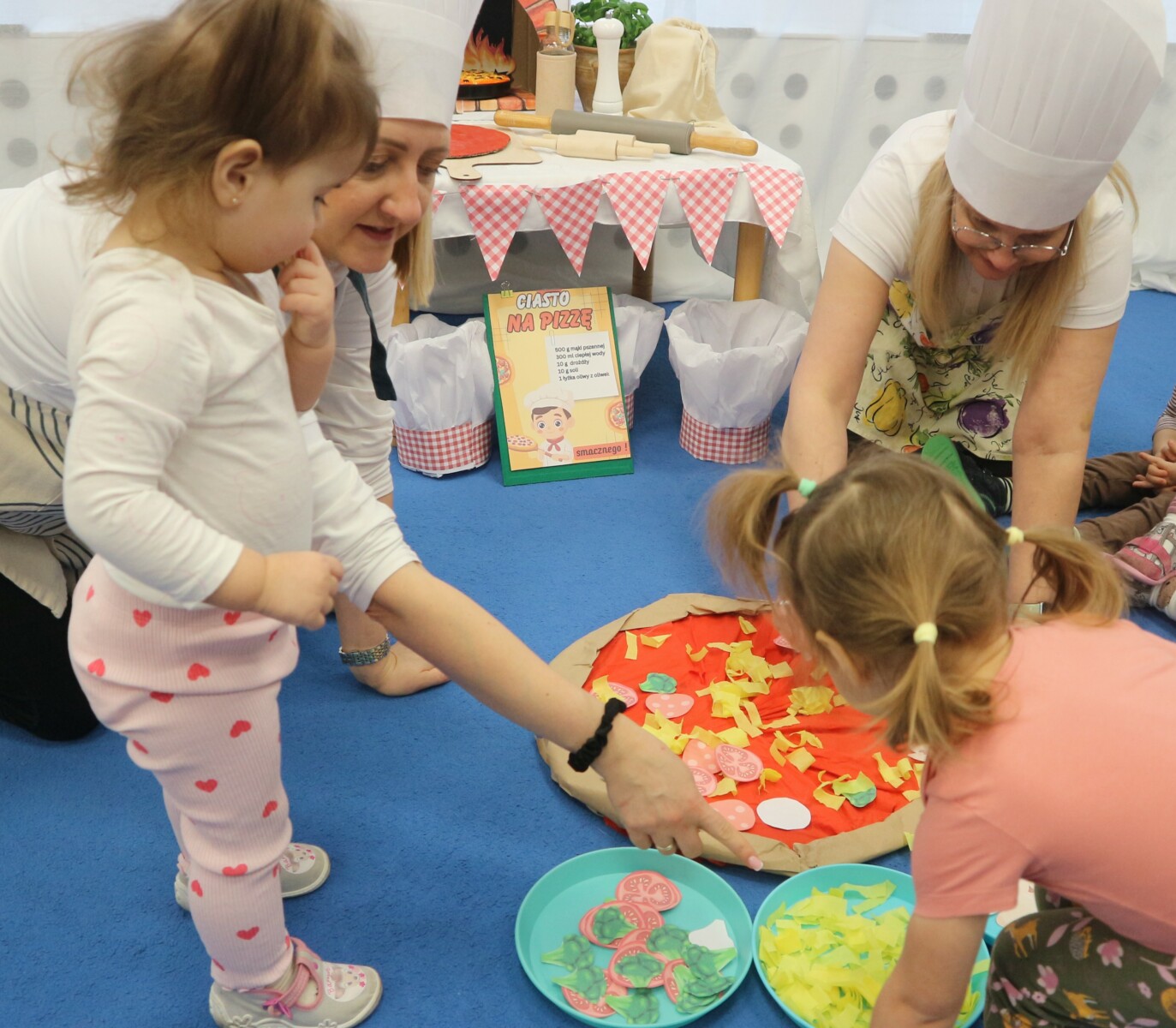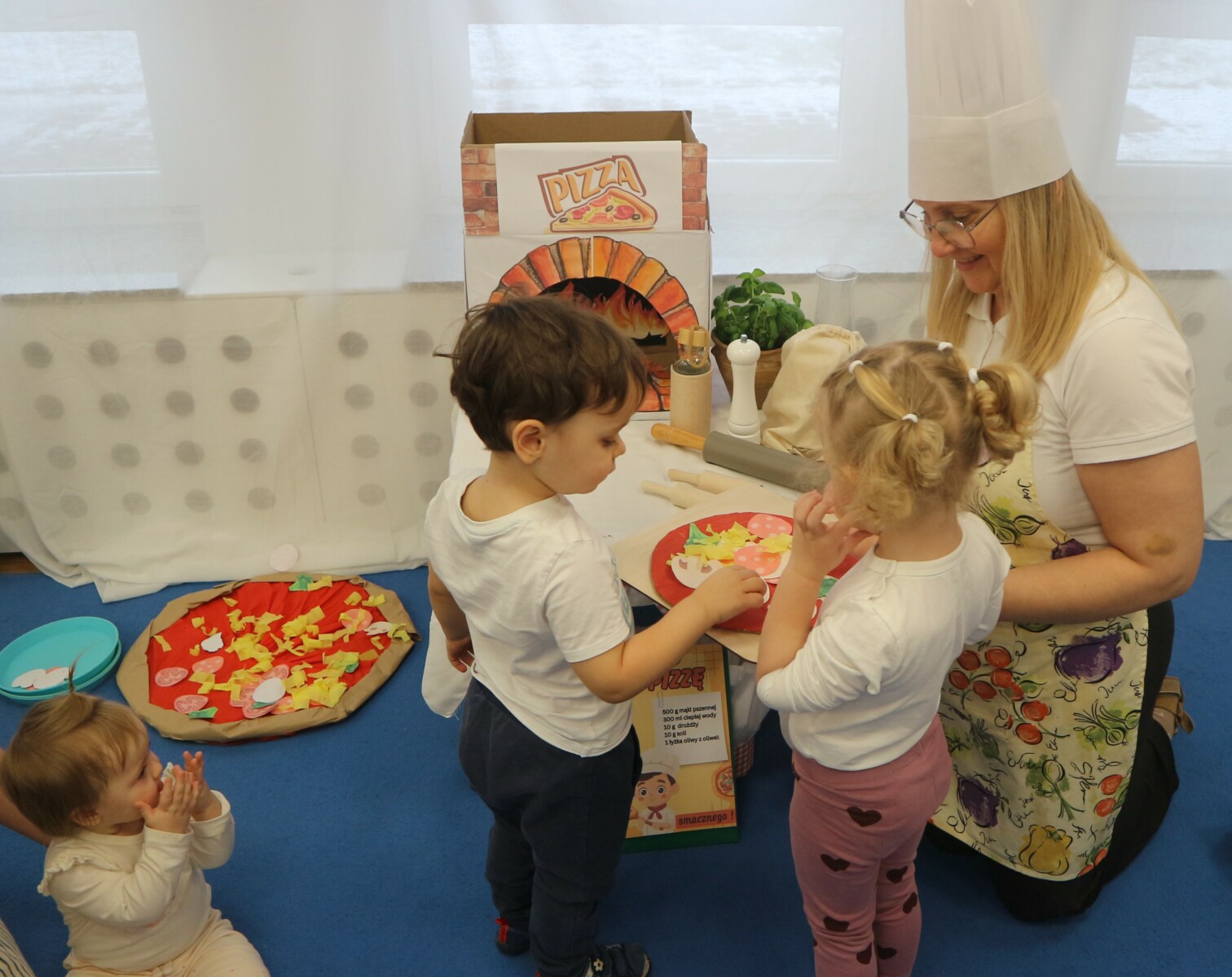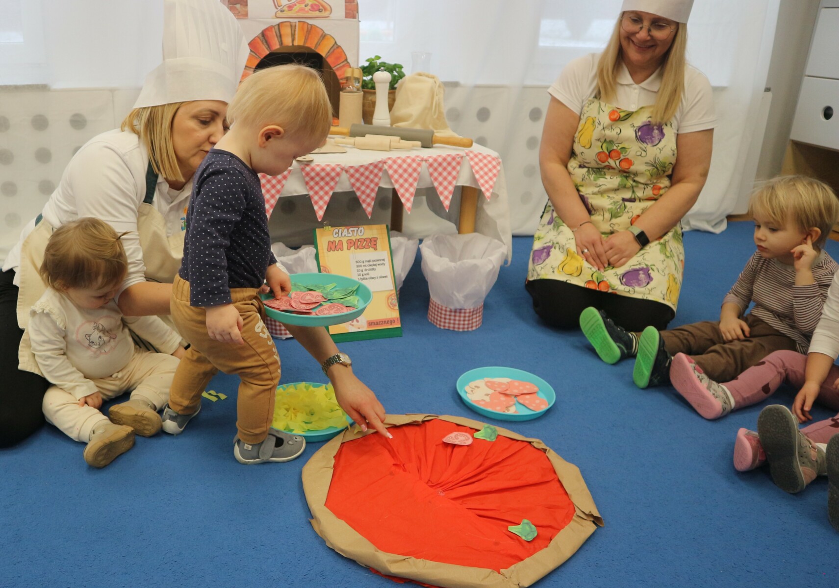 Choć Standardy 2026 dopiero wprowadzają obowiązkowe wsparcie rozwoju sensorycznego, w naszym żłobku to żadna nowość — my cieszymy się, że od lat jest on fundamentem codziennych aktywność. Dbamy o to, by każde dziecko mogło rozwijać się poprzez działanie, dotyk, smak i zabawę. Dzieci poznały składniki, układały własną papierową pizze, a potem wspólnie przygotowaliśmy prawdziwe ciasto i upiekliśmy pyszną pizzę. Podczas zajęć na twarzach dzieci nieustannie gościł uśmiech — dotykanie, wąchanie i próbowanie składników dostarczało im mnóstwo radości. Bogata stymulacja sensoryczna sprawiła, że każde dziecko mogło doświadczać nowych faktur, zapachów i smaków w bezpieczny, ciekawy sposób.