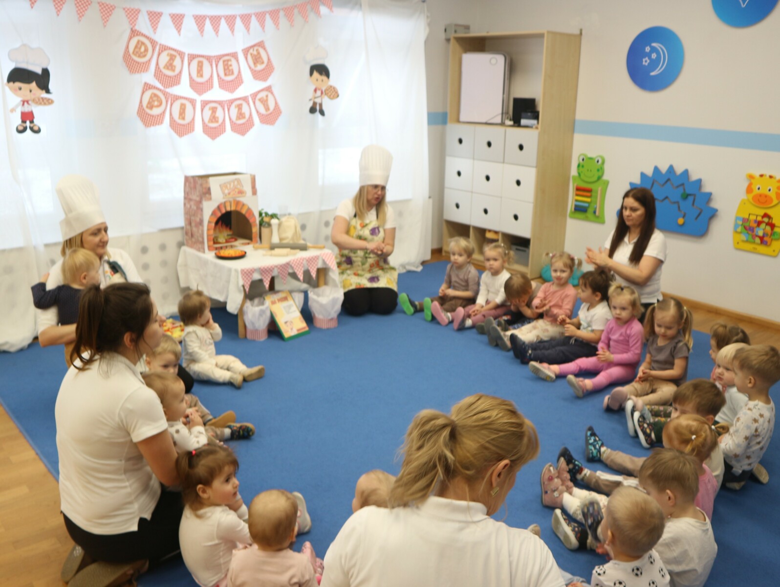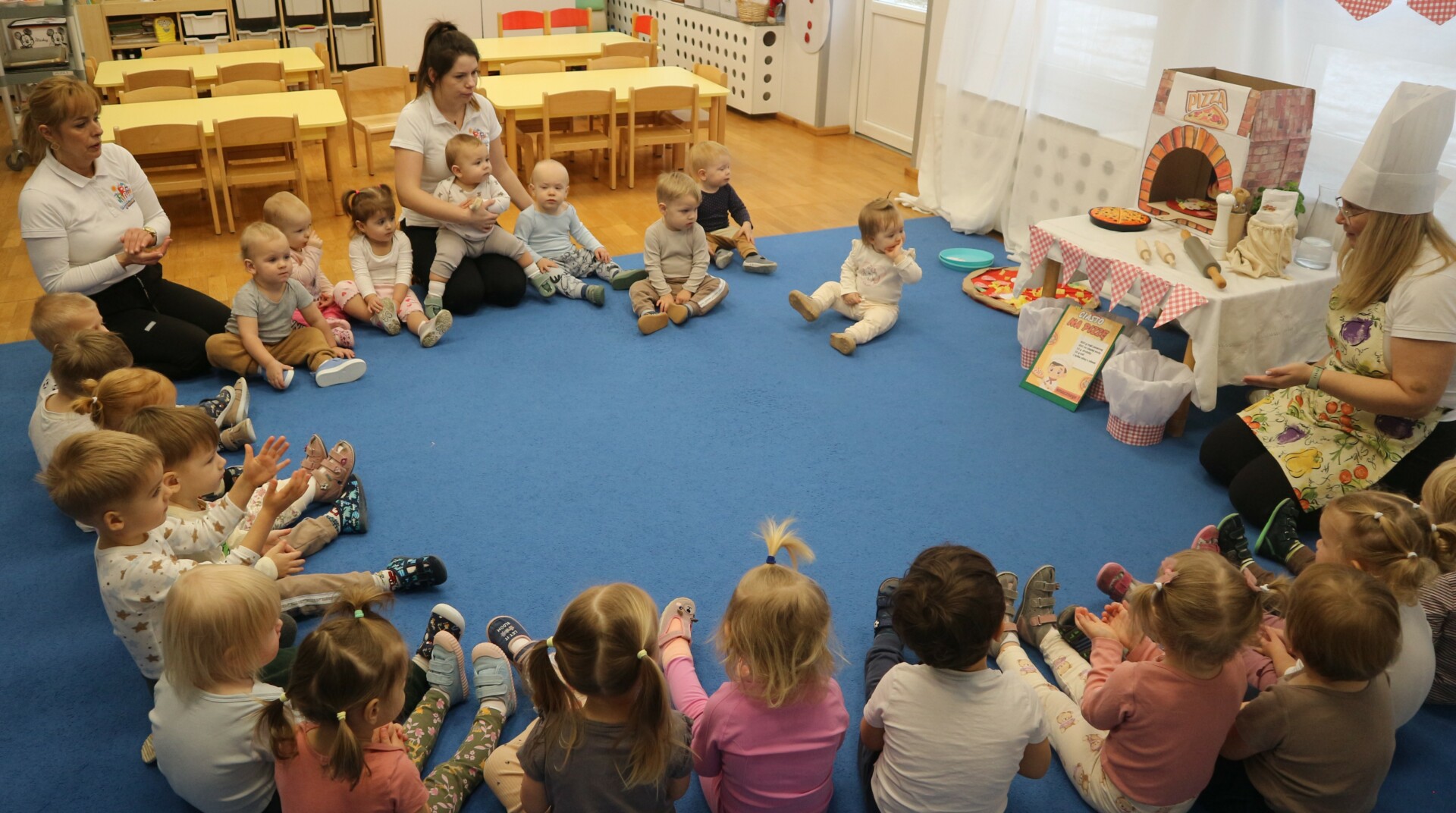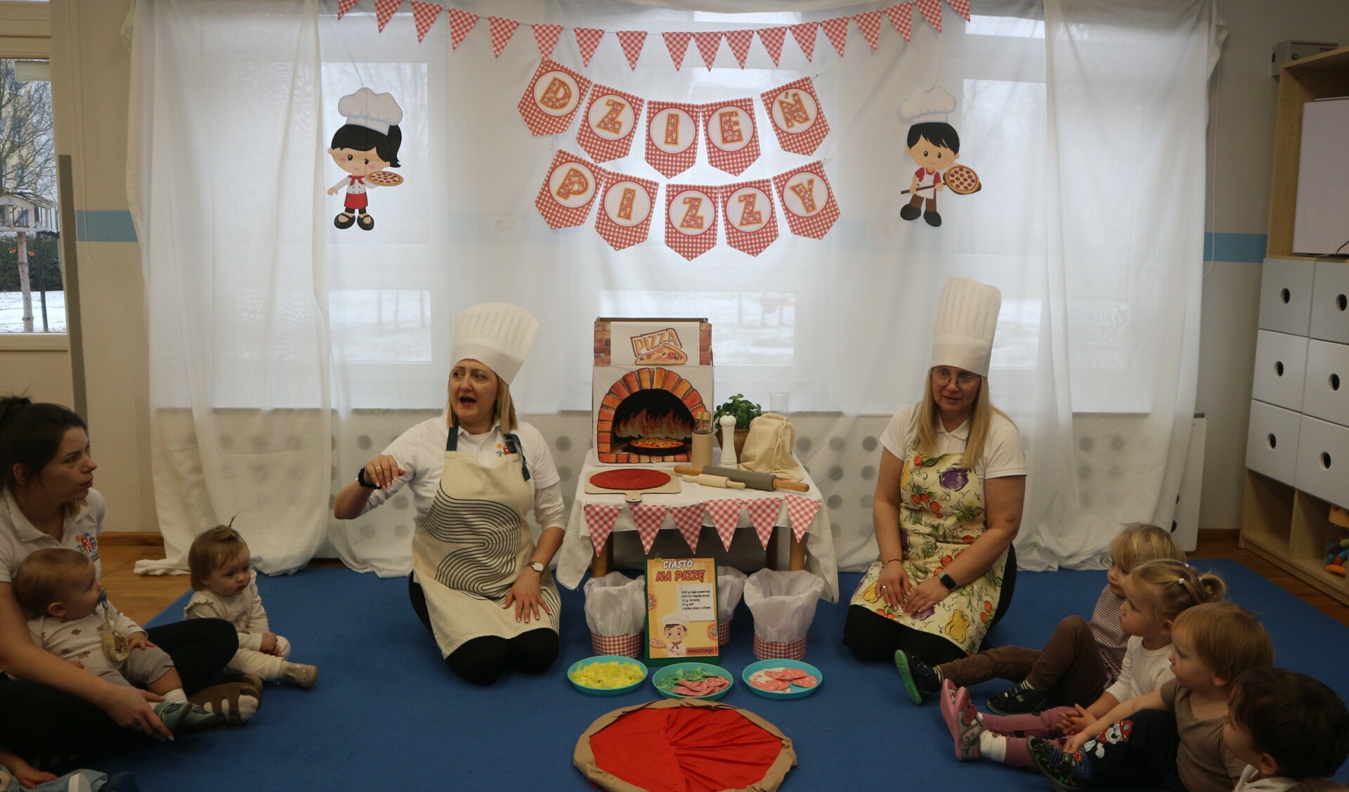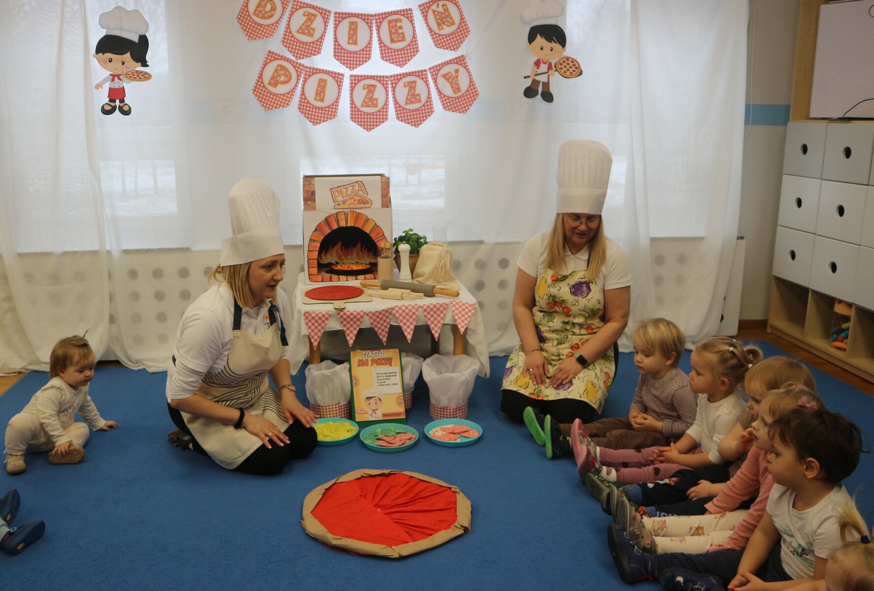 Choć Standardy 2026 dopiero wprowadzają obowiązkowe wsparcie rozwoju sensorycznego, w naszym żłobku to żadna nowość — my cieszymy się, że od lat jest on fundamentem codziennych aktywność. Dbamy o to, by każde dziecko mogło rozwijać się poprzez działanie, dotyk, smak i zabawę. Dzieci poznały składniki, układały własną papierową pizze, a potem wspólnie przygotowaliśmy prawdziwe ciasto i upiekliśmy pyszną pizzę. Podczas zajęć na twarzach dzieci nieustannie gościł uśmiech — dotykanie, wąchanie i próbowanie składników dostarczało im mnóstwo radości. Bogata stymulacja sensoryczna sprawiła, że każde dziecko mogło doświadczać nowych faktur, zapachów i smaków w bezpieczny, ciekawy sposób.