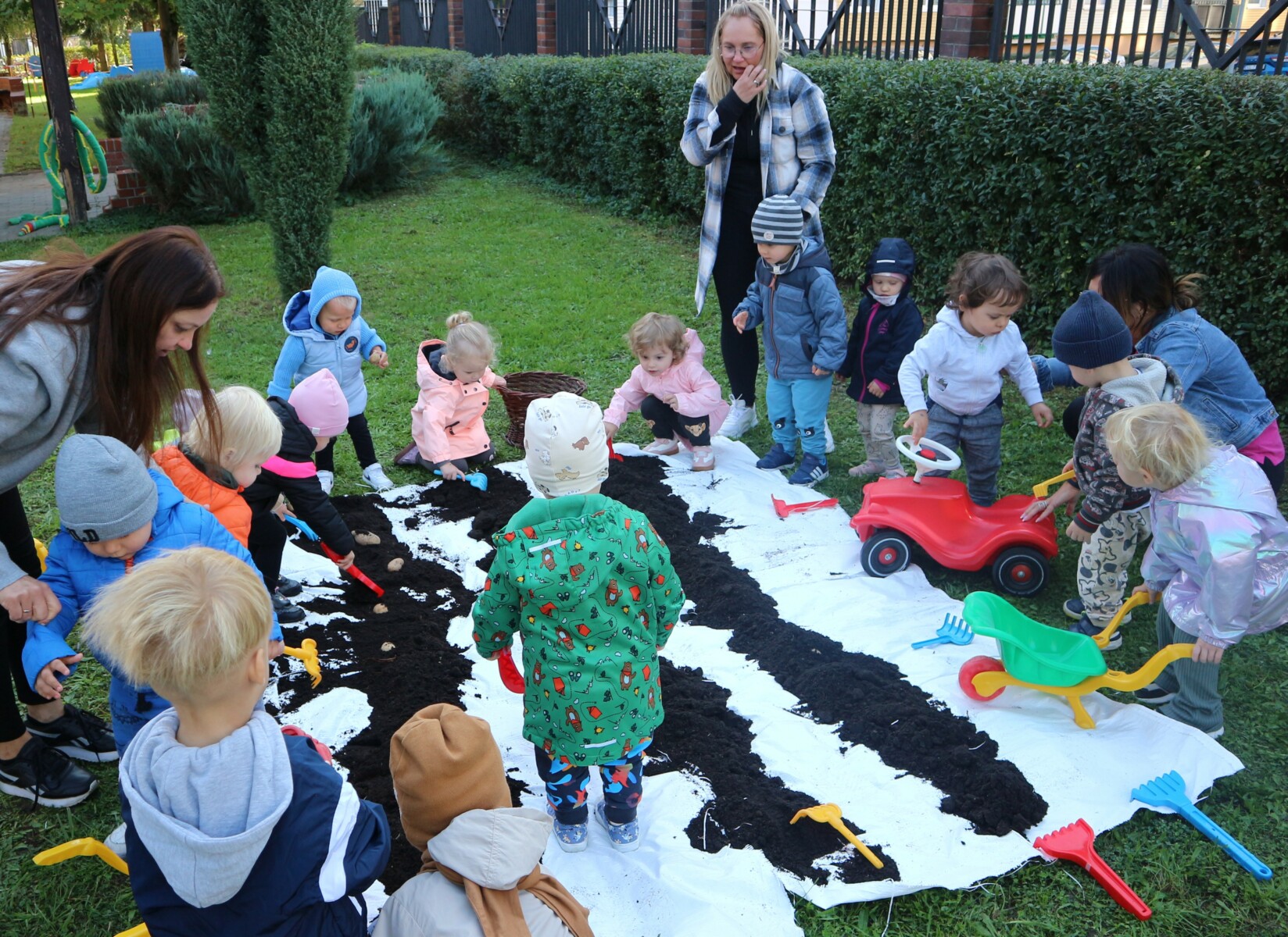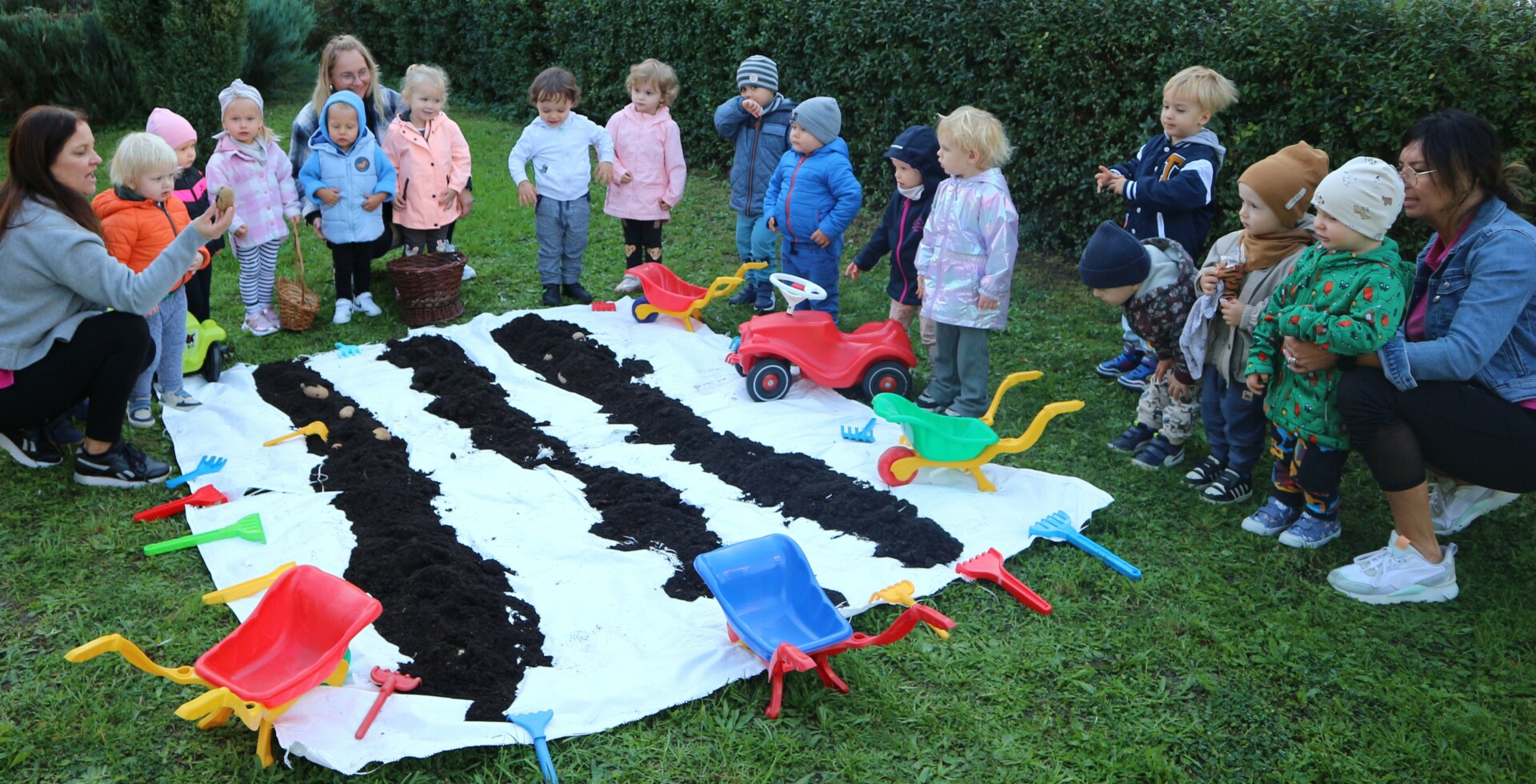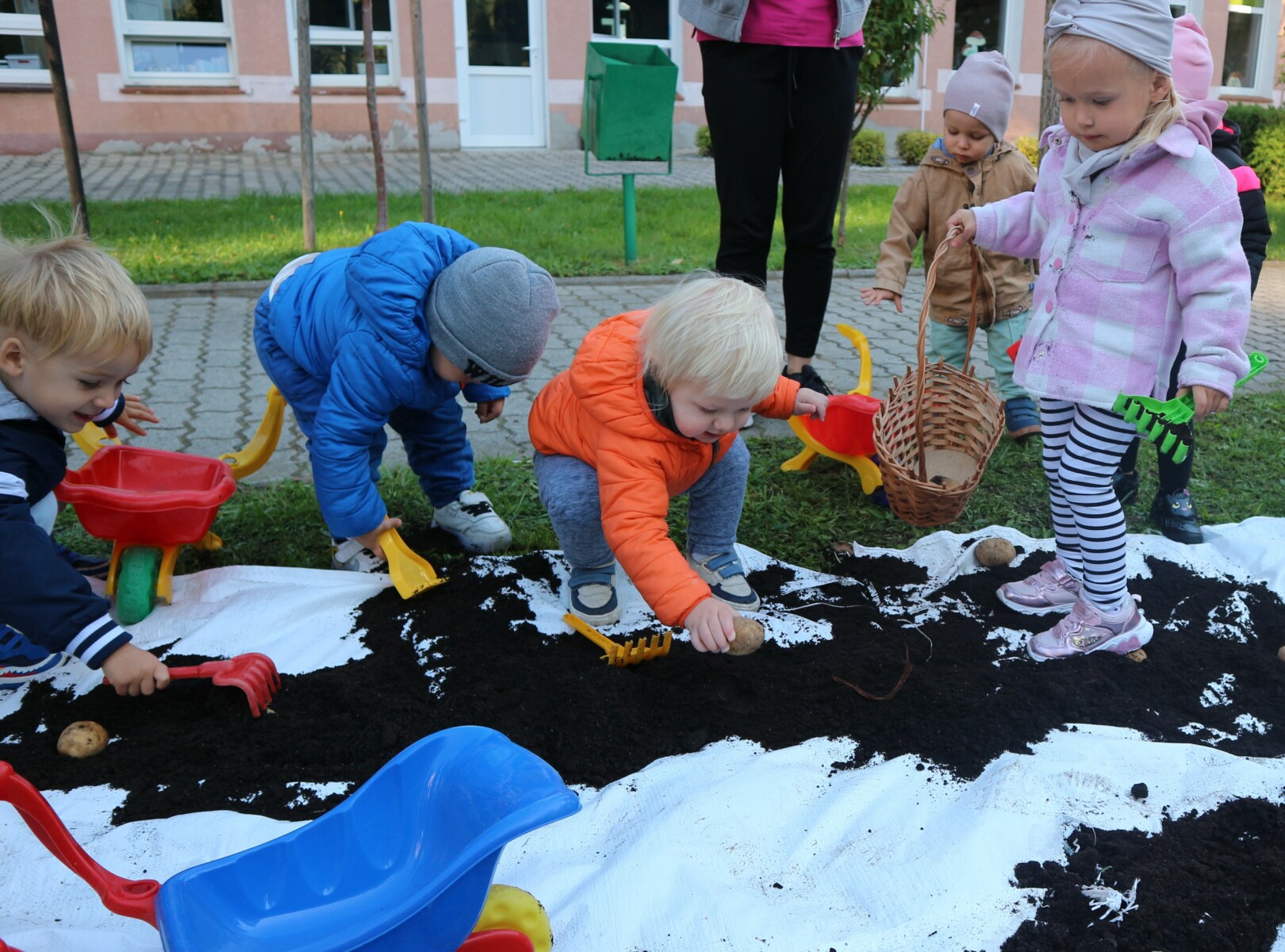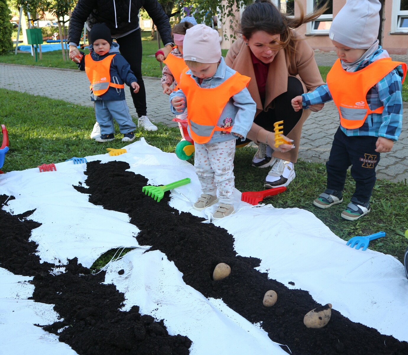Dziś w naszym żłobku odbyły się wyjątkowe wykopki ziemniaczane .Dzieci z ogromnym zaangażowaniem odkrywały ziemniaki ukryte w ziemi ,a przy tym uczyły się skąd bierze się jedzenie , które trafia na nasze stoły.  Było mnóstwo radości, śmiechu i ciekawych odkryć .Mali odkrywcy bawili się doskonale ,rozwijając swoją ciekawość świata i sprawność manualną .