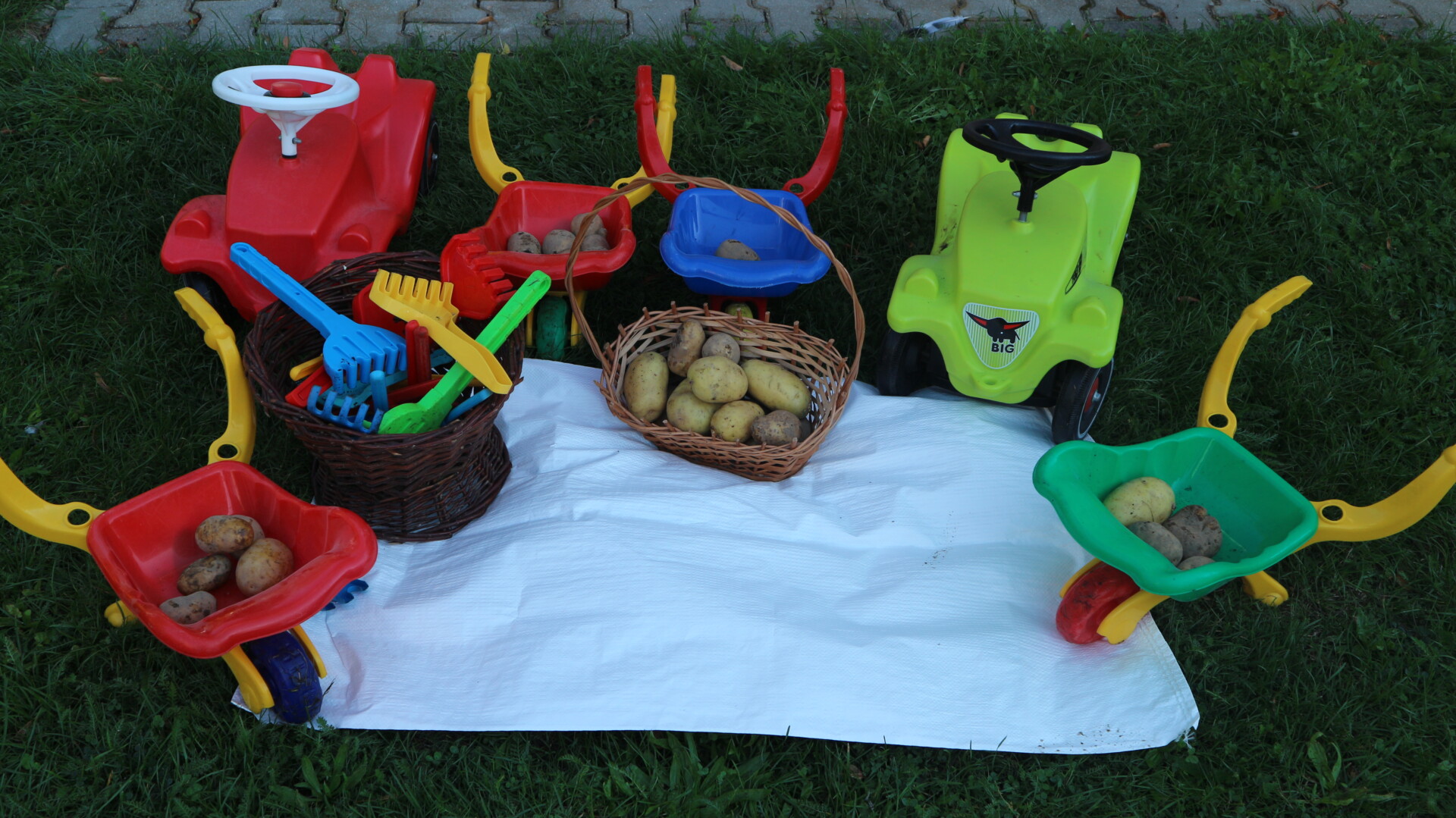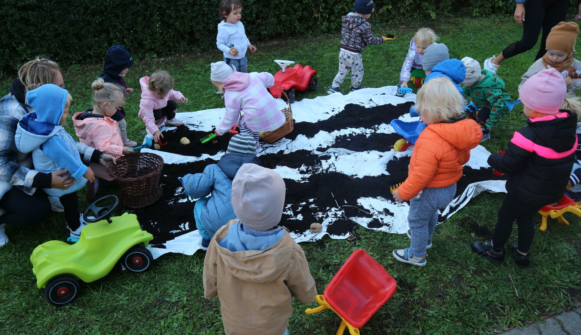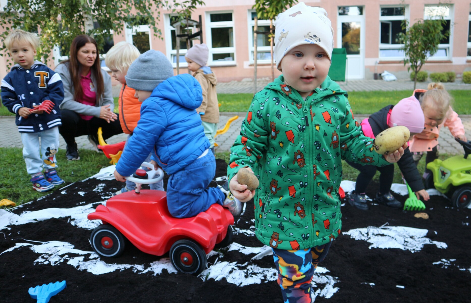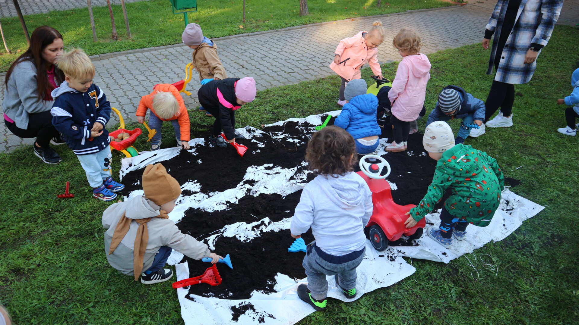 Dziś w naszym żłobku odbyły się wyjątkowe wykopki ziemniaczane .Dzieci z ogromnym zaangażowaniem odkrywały ziemniaki ukryte w ziemi ,a przy tym uczyły się skąd bierze się jedzenie , które trafia na nasze stoły.  Było mnóstwo radości, śmiechu i ciekawych odkryć .Mali odkrywcy bawili się doskonale ,rozwijając swoją ciekawość świata i sprawność manualną .