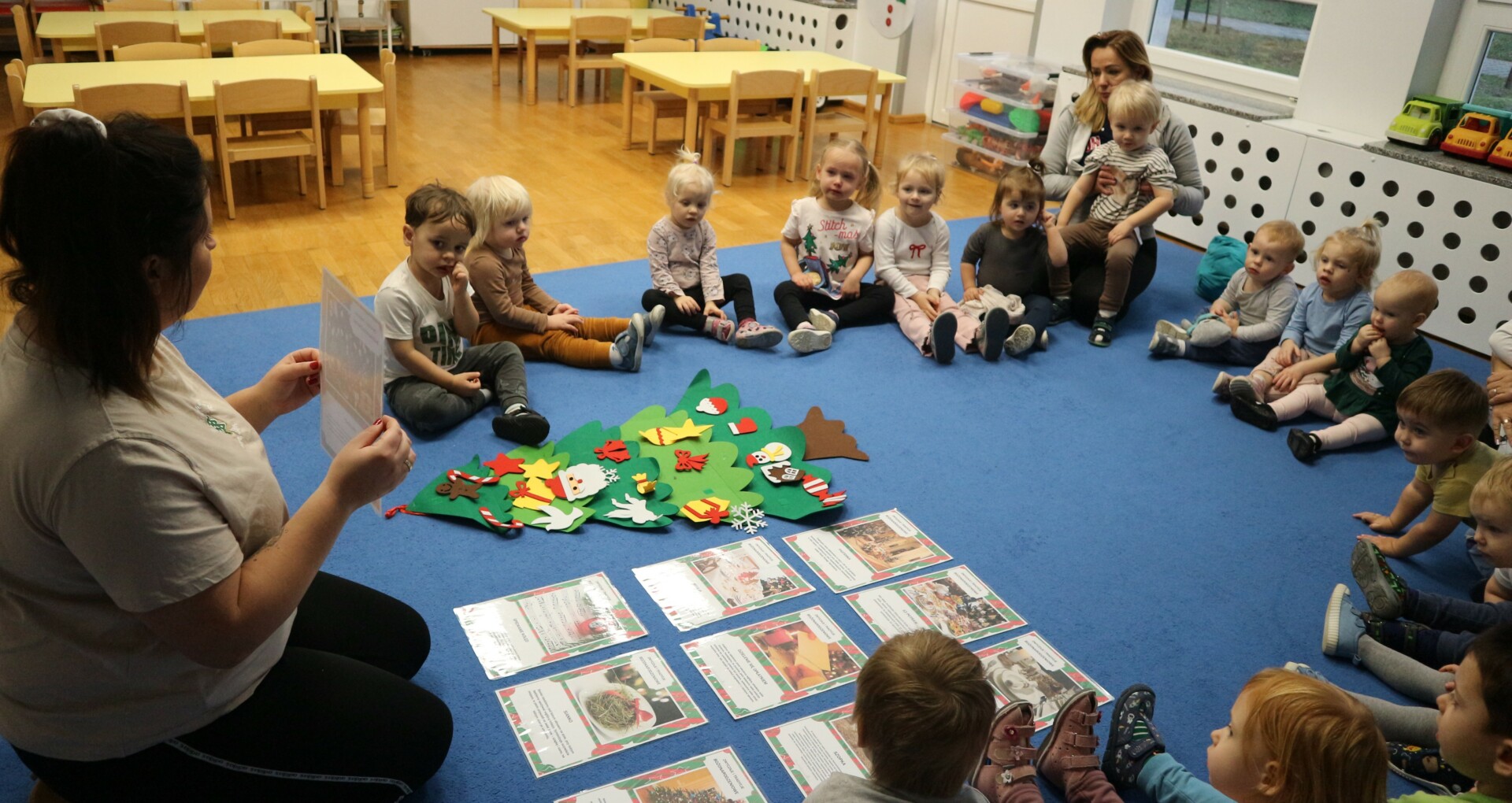 Dziś w żłobku dzieci z dwóch grup miały okazję poznawać piękne zwyczaje bożonarodzeniowe. Rozmawialiśmy o świątecznych tradycjach, które wprowadzają wyjątkową, ciepłą atmosferę tego czasu. Naszym gościem był Pan Maciej, który grał na gitarze, a wspólnie z dziećmi śpiewaliśmy kolędy. Było radośnie, muzycznie i bardzo świątecznie.