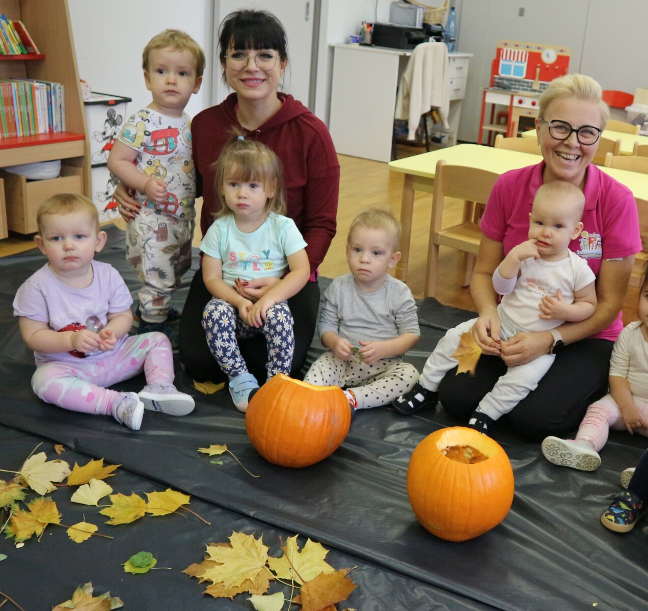 Nie zabrakło też wyjątkowego gościa – Pani Dyni, która odwiedziła nasze maluchy, przynosząc ze sobą jesienny nastrój i ciepły uśmiech. 🍁