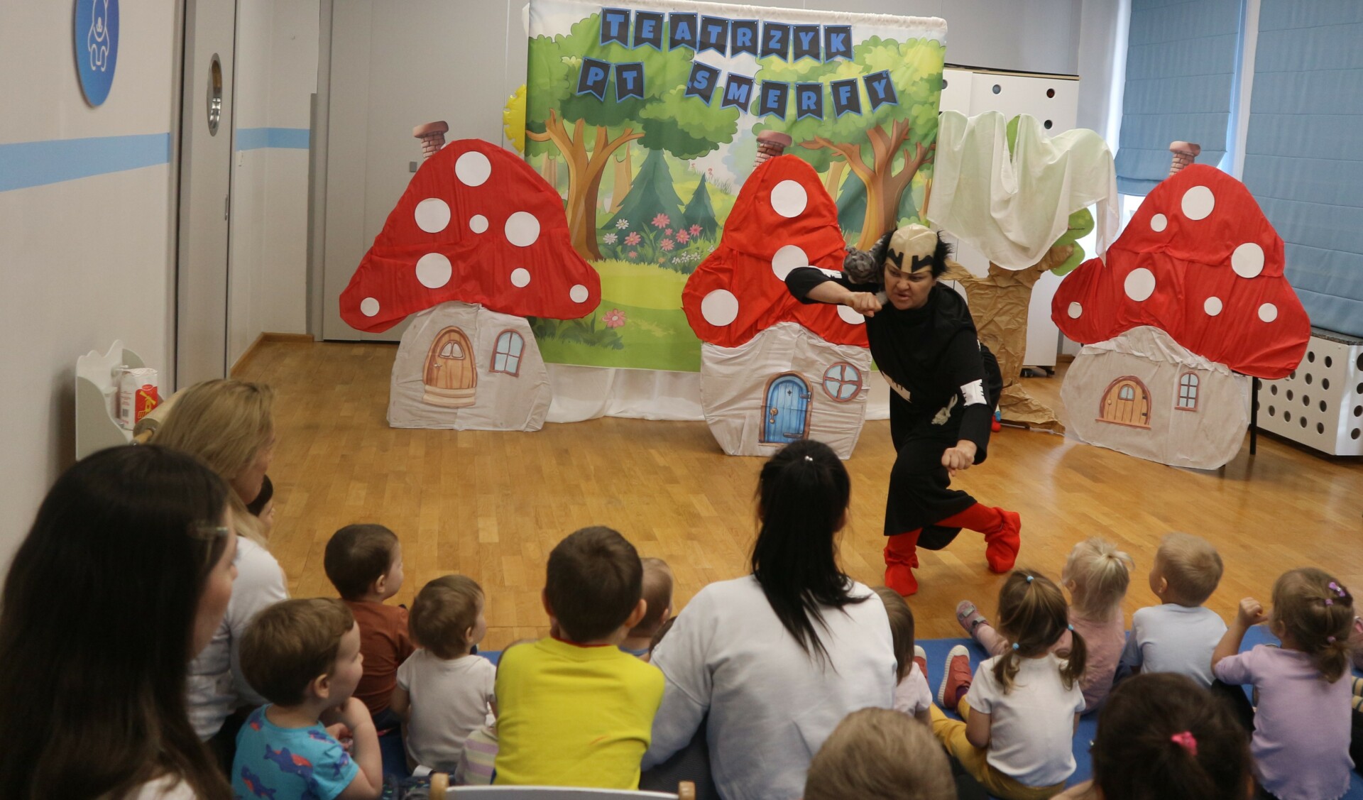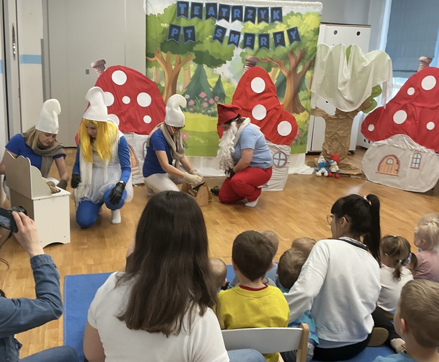 Dziś w żłobku świętowaliśmy Dzień Teatru. Z tej okazji personel przygotował wyjątkowe przedstawienie pt. „Smerfy szukają wiosny”. Było dużo śmiechu, radości i dobrej zabawy. Dzieci były zachwycone i z ogromnym zainteresowaniem oglądały występ. To był naprawdę miły i pełen wrażeń dzień!