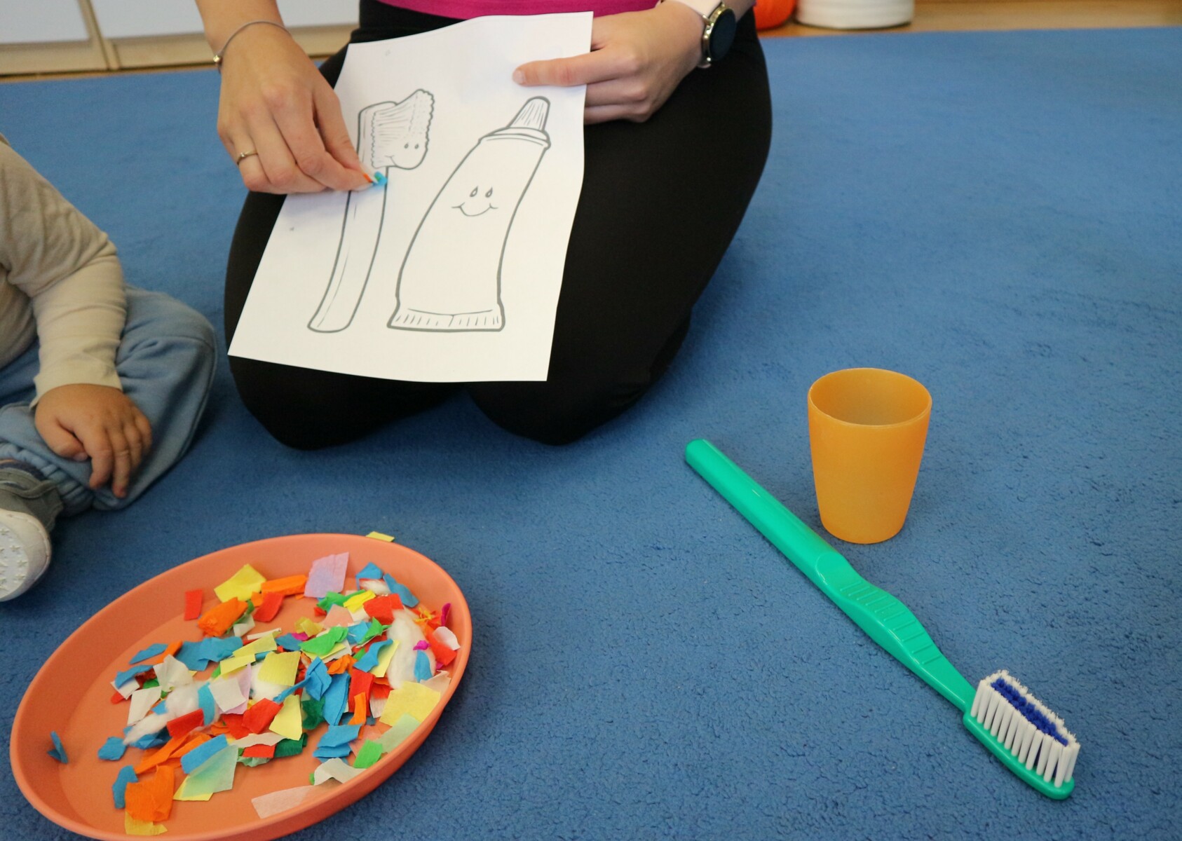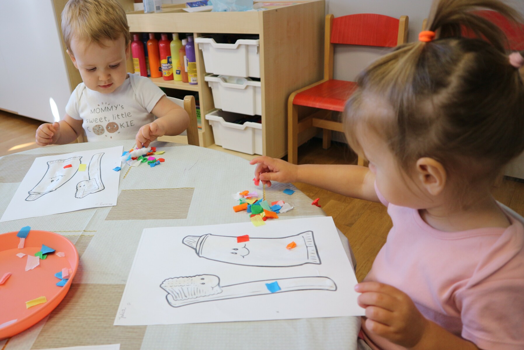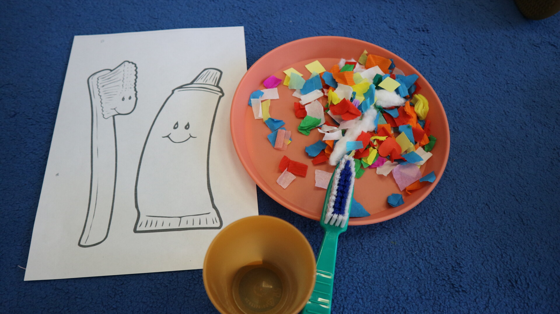 Wyklejanie bibułą konturów szczoteczki i pasty