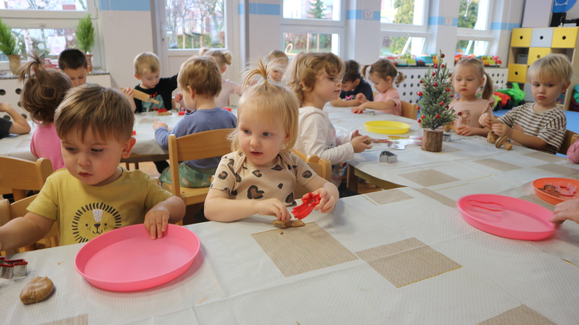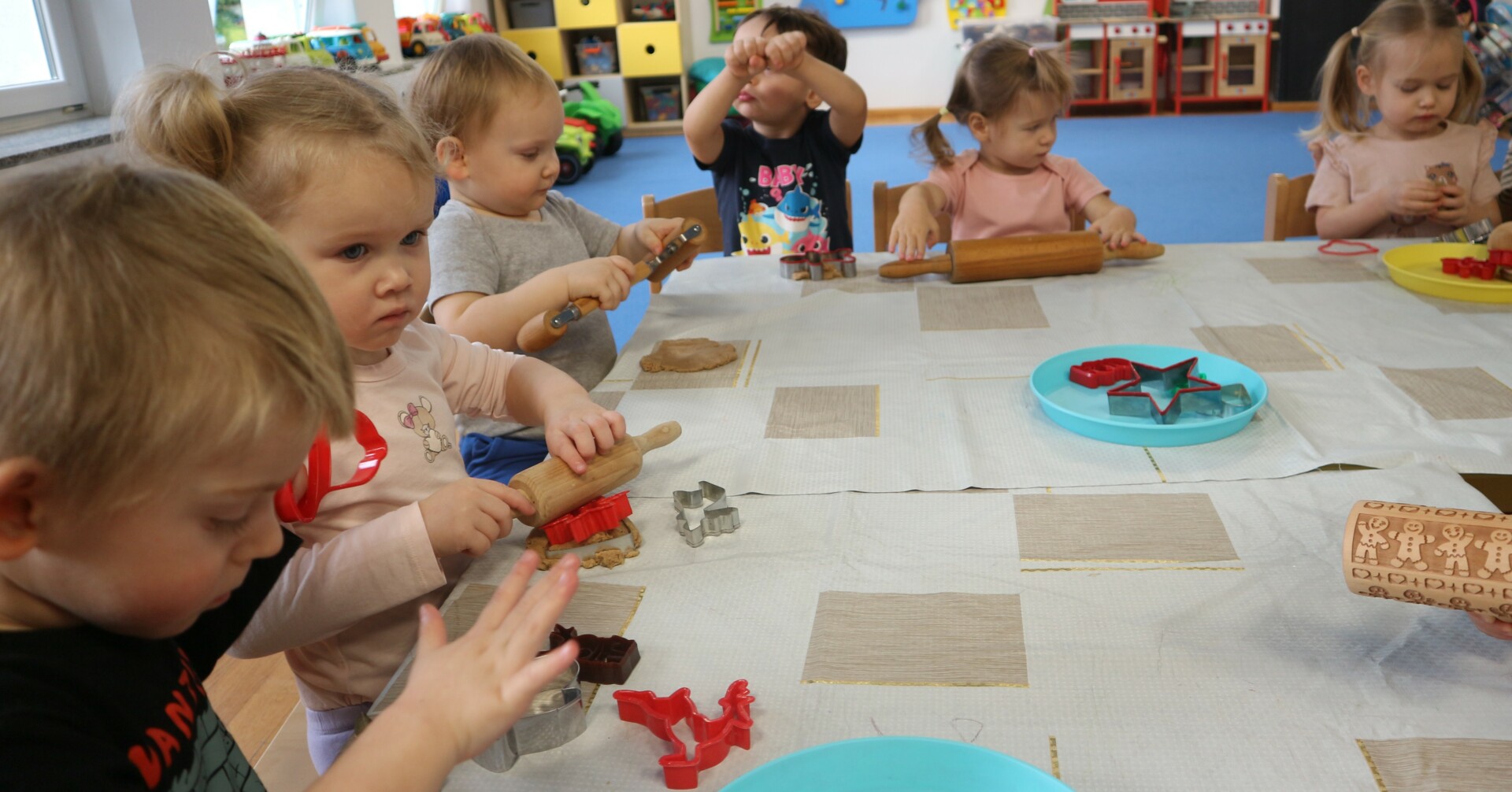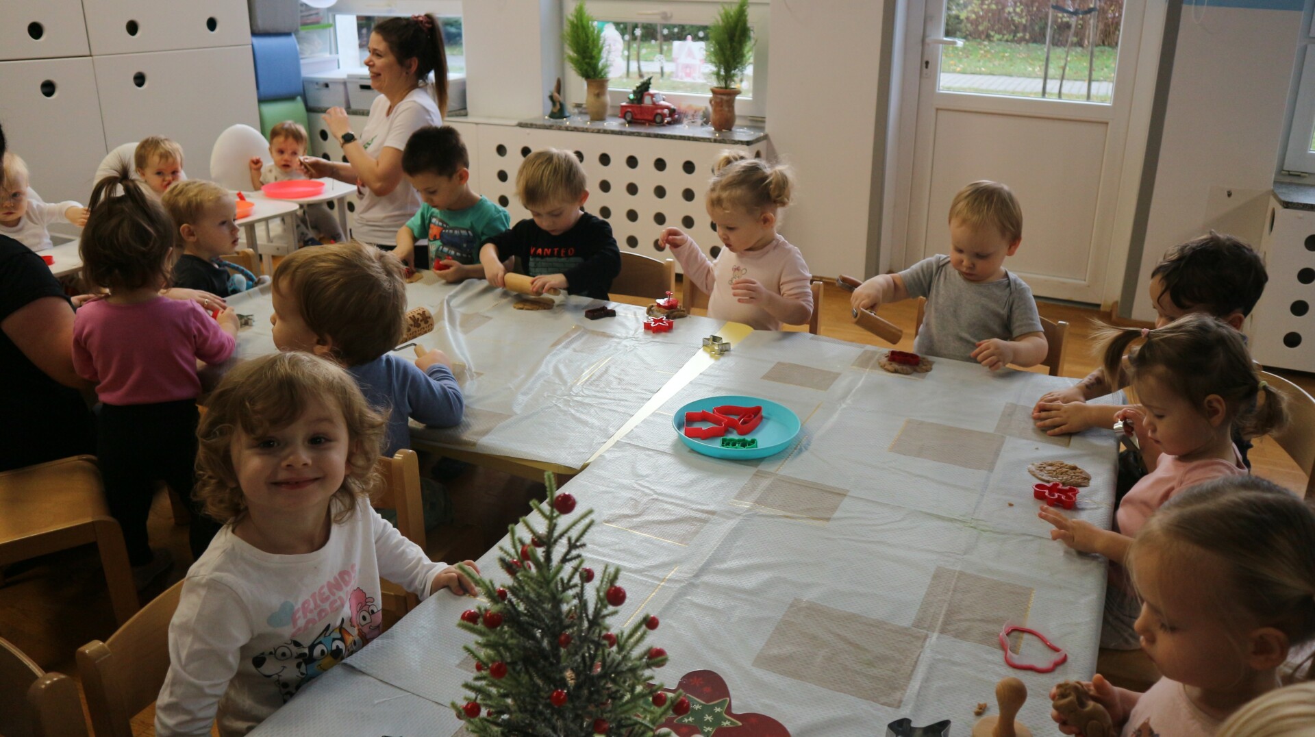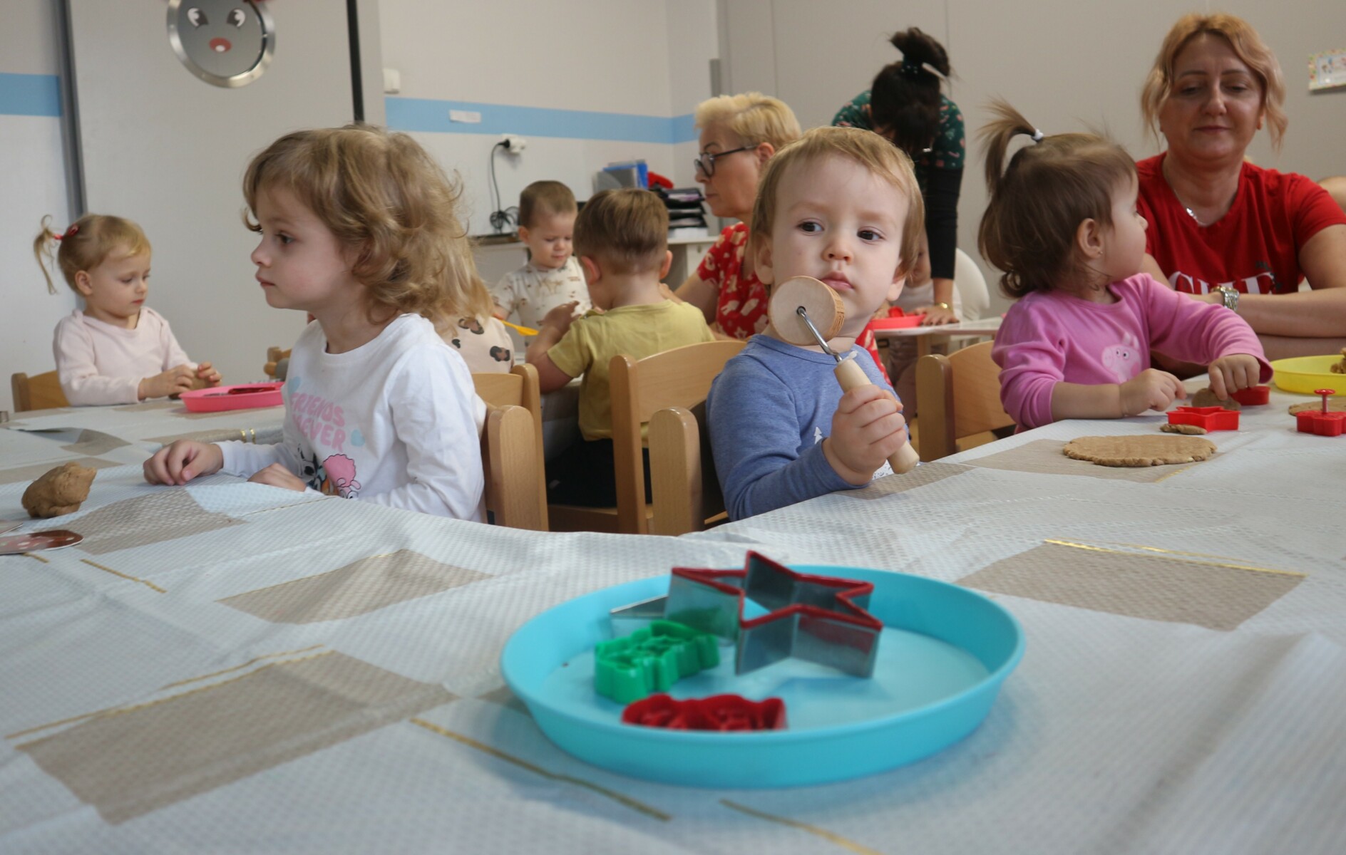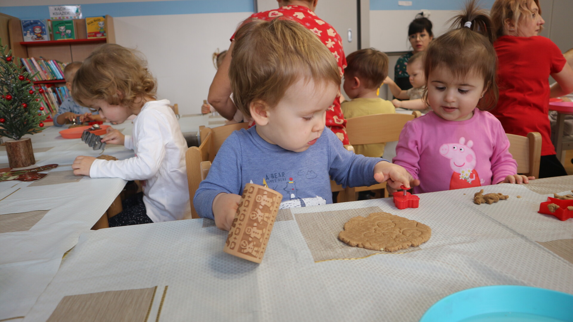 Dzisiaj w Żłobku Miejskim nr 1 unosił się prawdziwie świąteczny zapach korzennych przypraw. Zarówno grupa młodsza jak i starsza z ogromnym zaangażowaniem uczestniczyły w świątecznych warsztatach . Dzieci z radością wałkowały ciasto, wykrawały kształty i poznawały zapach pierników.