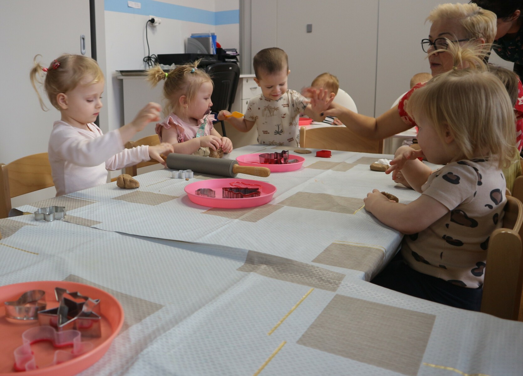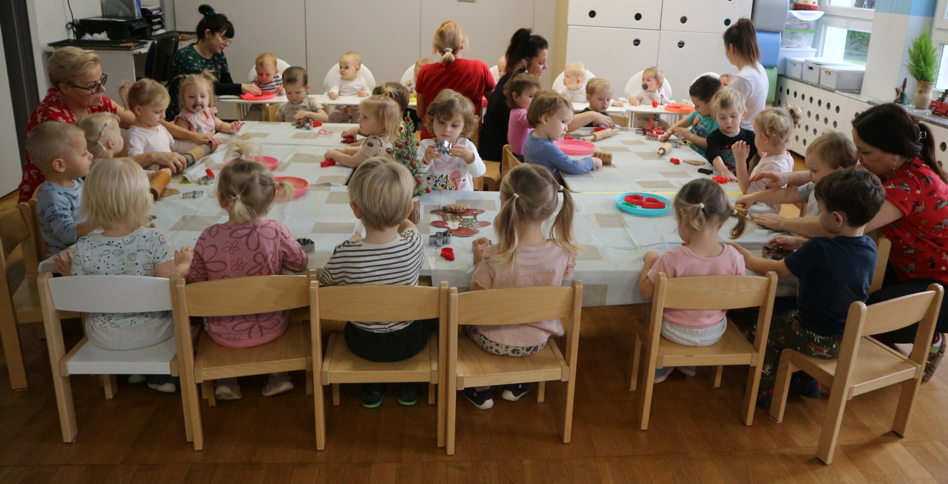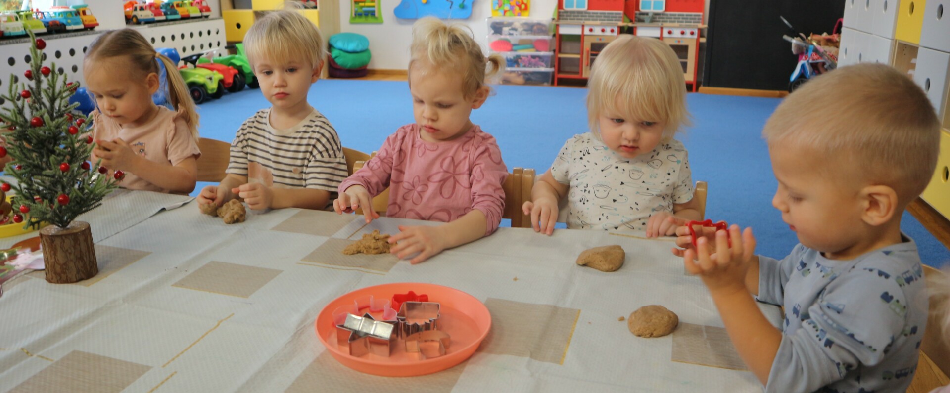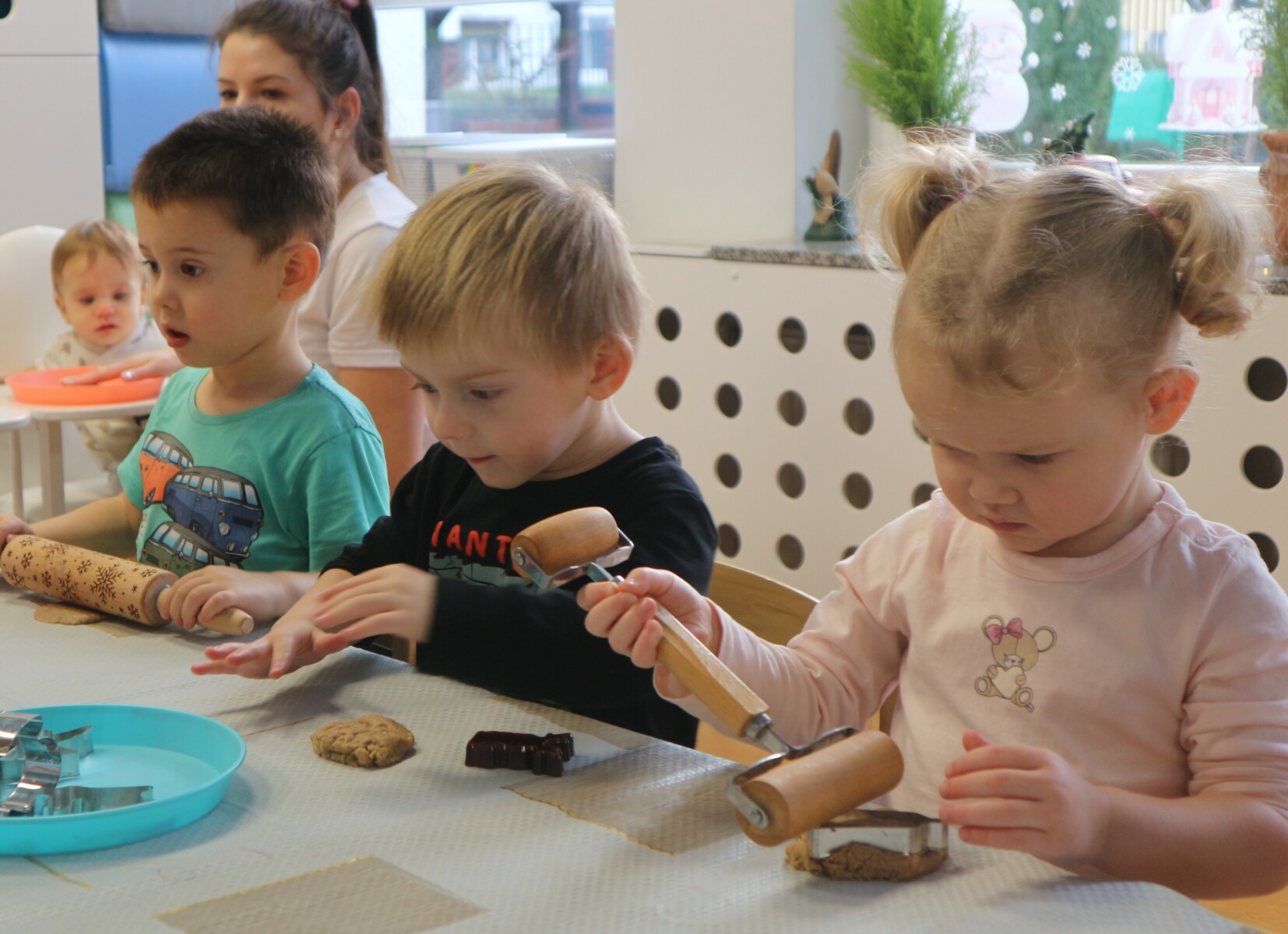 Dzisiaj w Żłobku Miejskim nr 1 unosił się prawdziwie świąteczny zapach korzennych przypraw. Zarówno grupa młodsza jak i starsza z ogromnym zaangażowaniem uczestniczyły w świątecznych warsztatach . Dzieci z radością wałkowały ciasto, wykrawały kształty i poznawały zapach pierników.