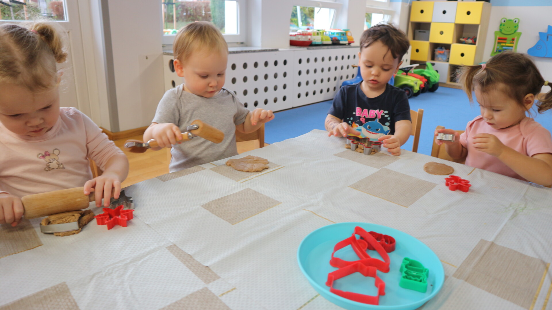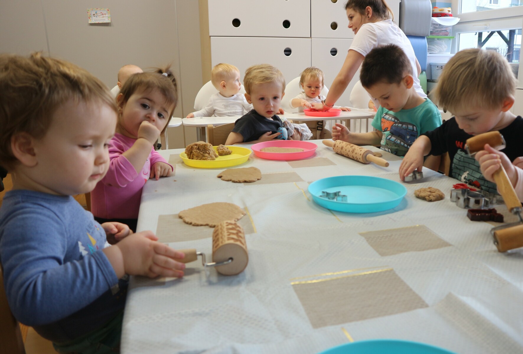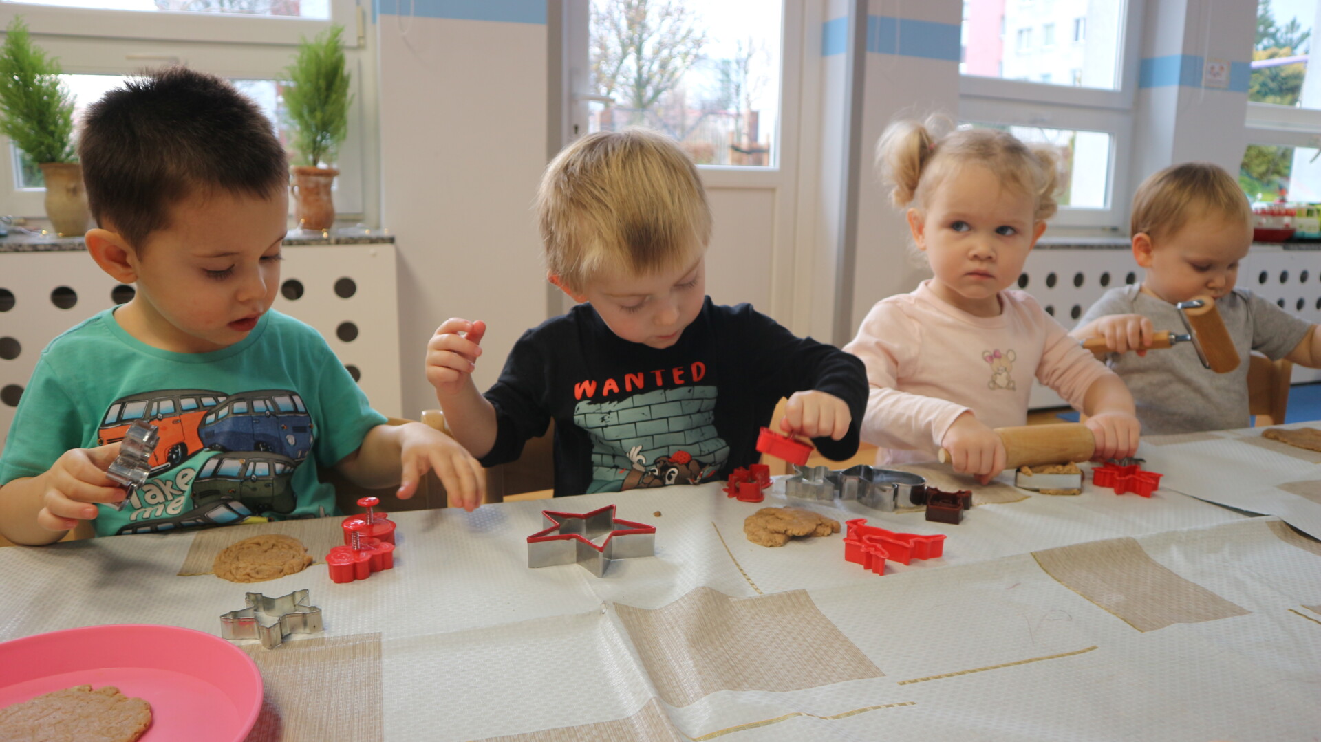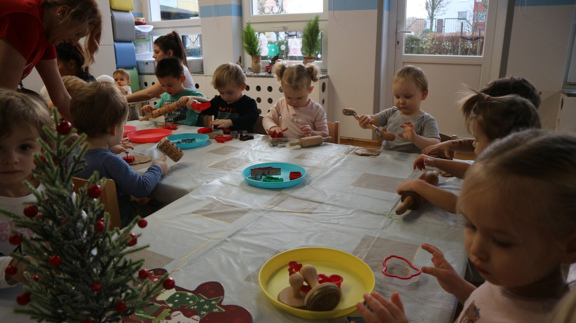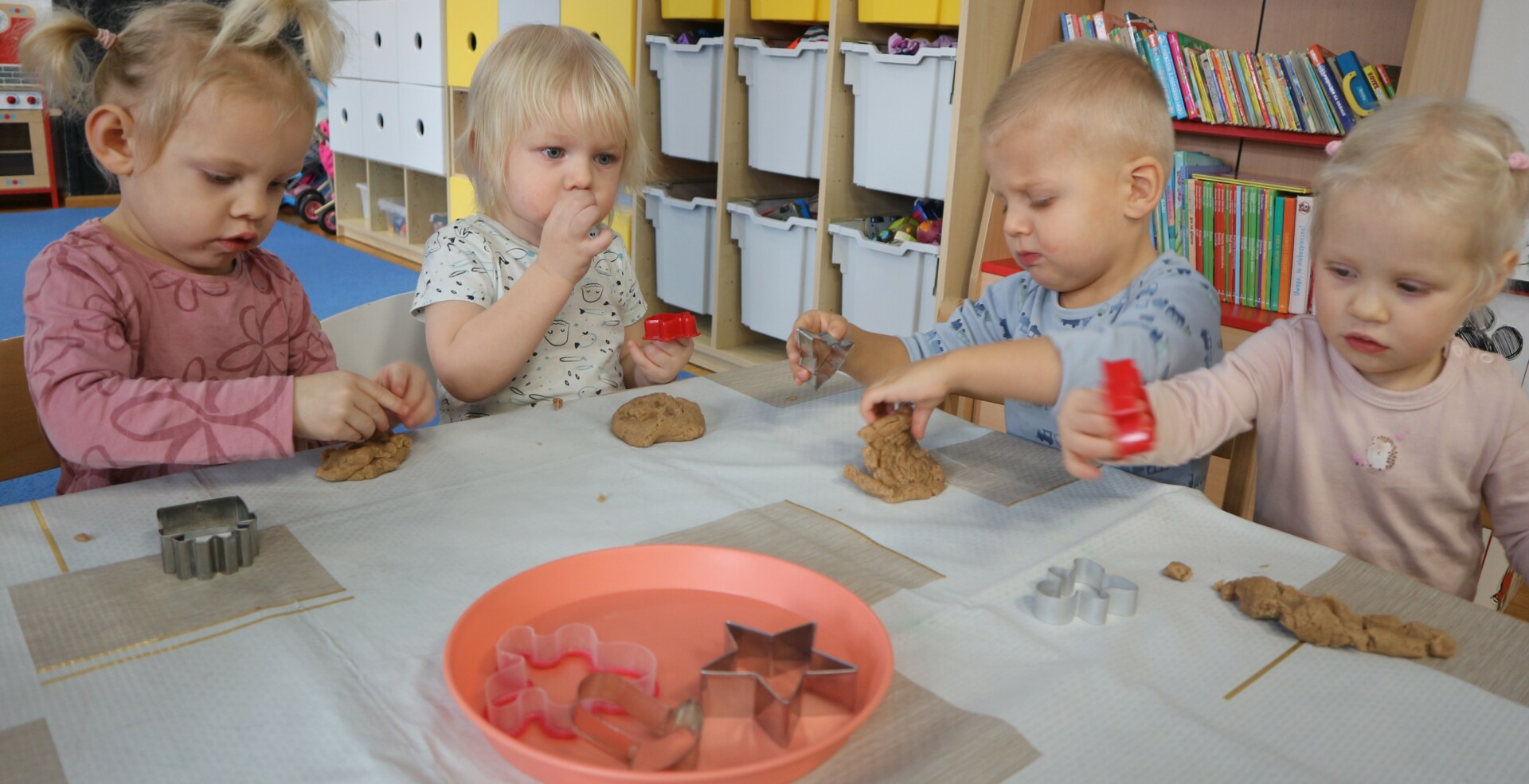 Dzisiaj w Żłobku Miejskim nr 1 unosił się prawdziwie świąteczny zapach korzennych przypraw. Zarówno grupa młodsza jak i starsza z ogromnym zaangażowaniem uczestniczyły w świątecznych warsztatach . Dzieci z radością wałkowały ciasto, wykrawały kształty i poznawały zapach pierników.