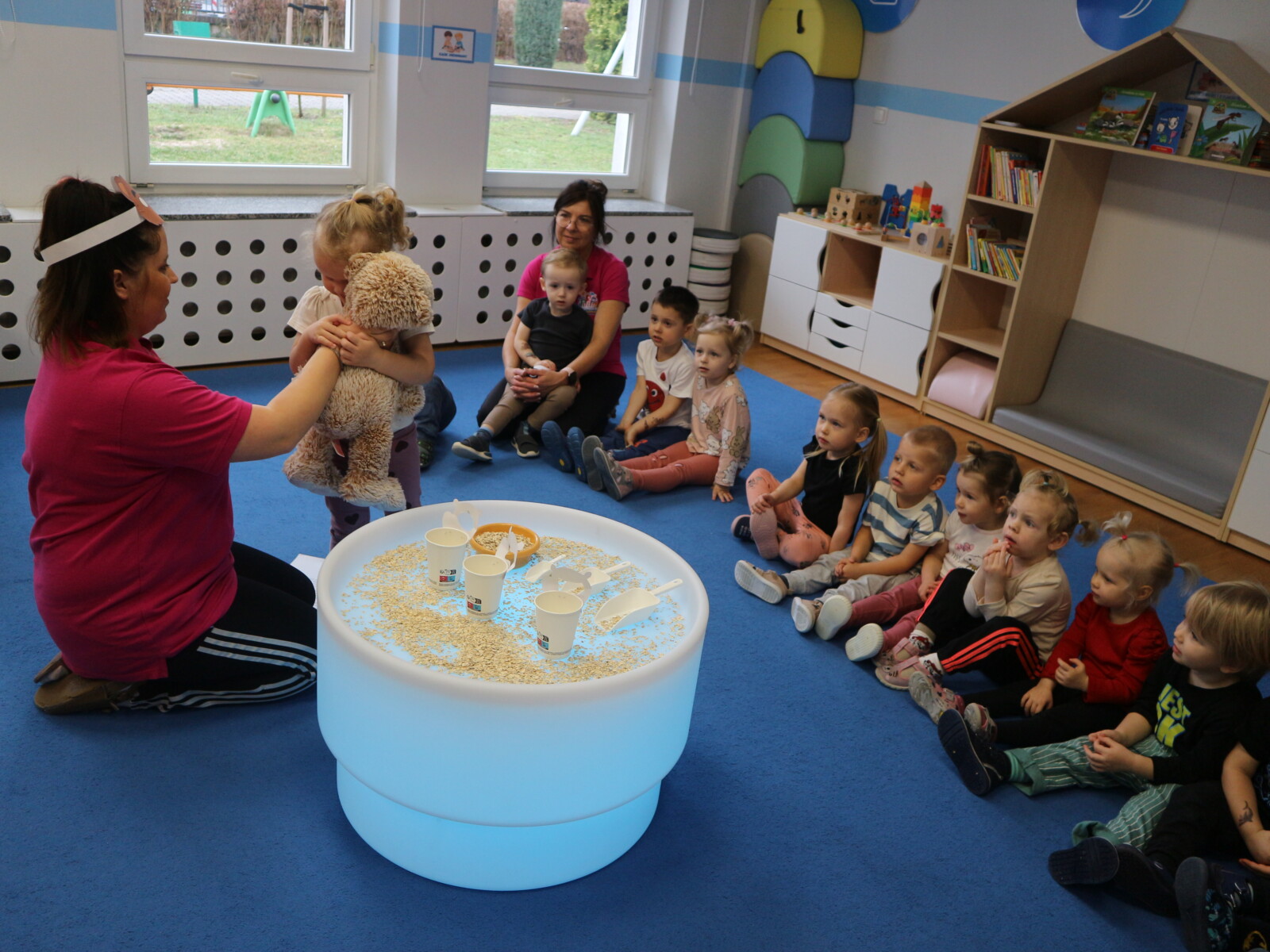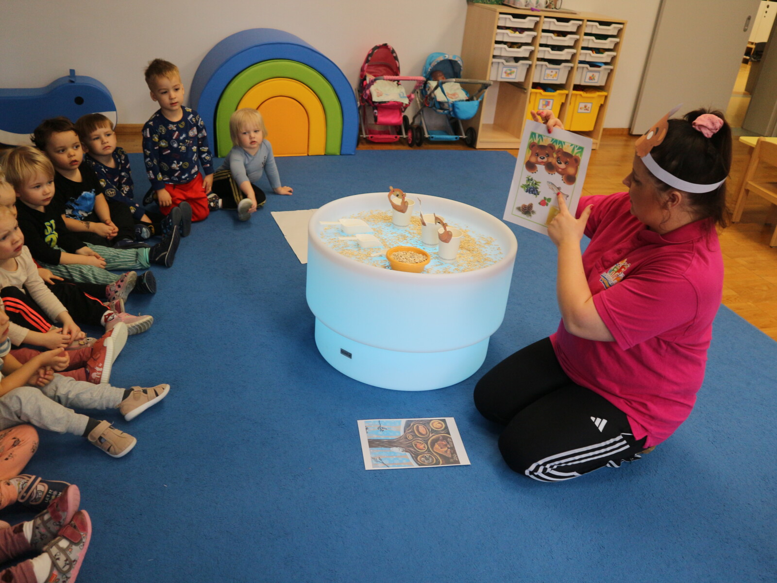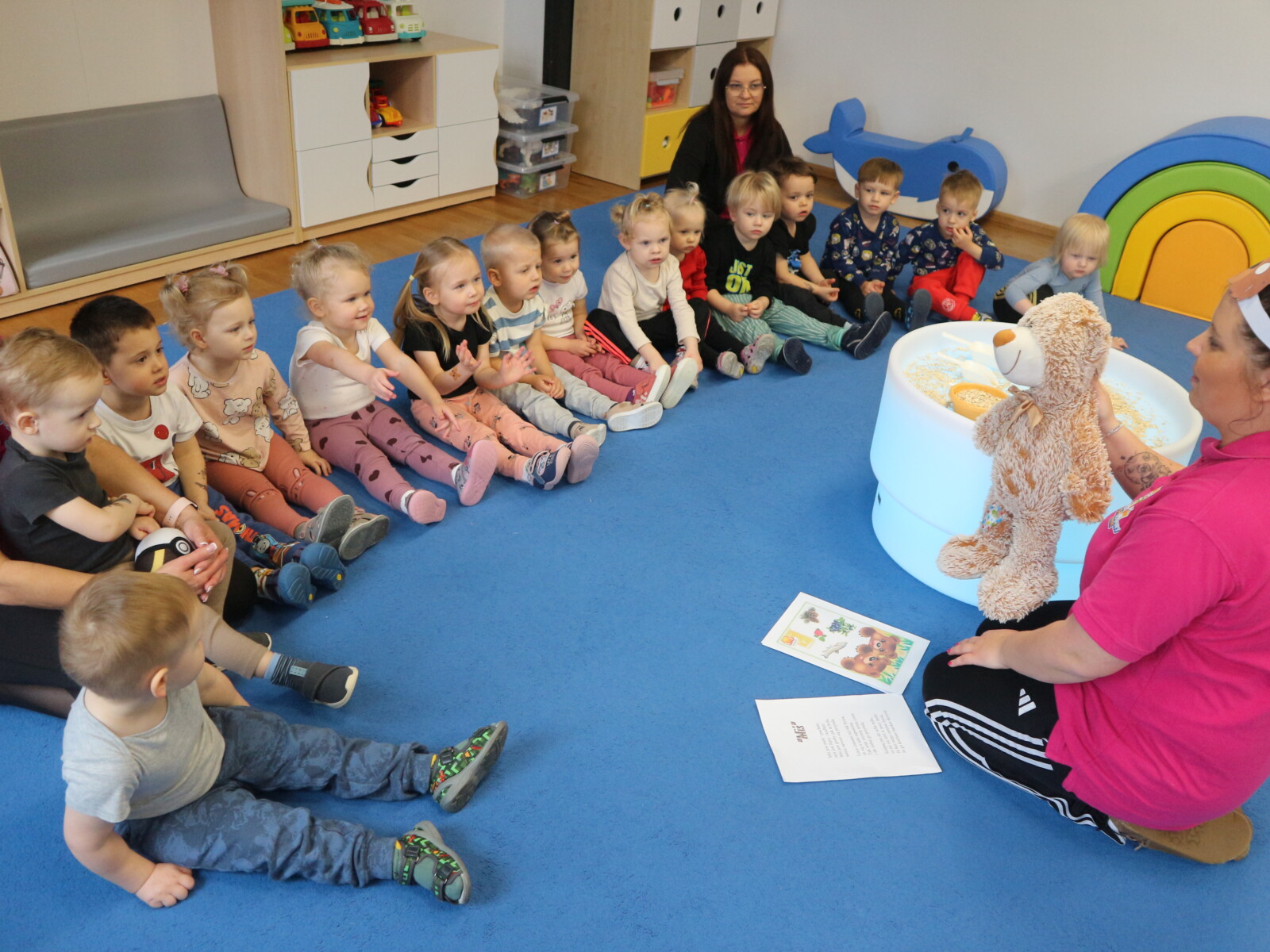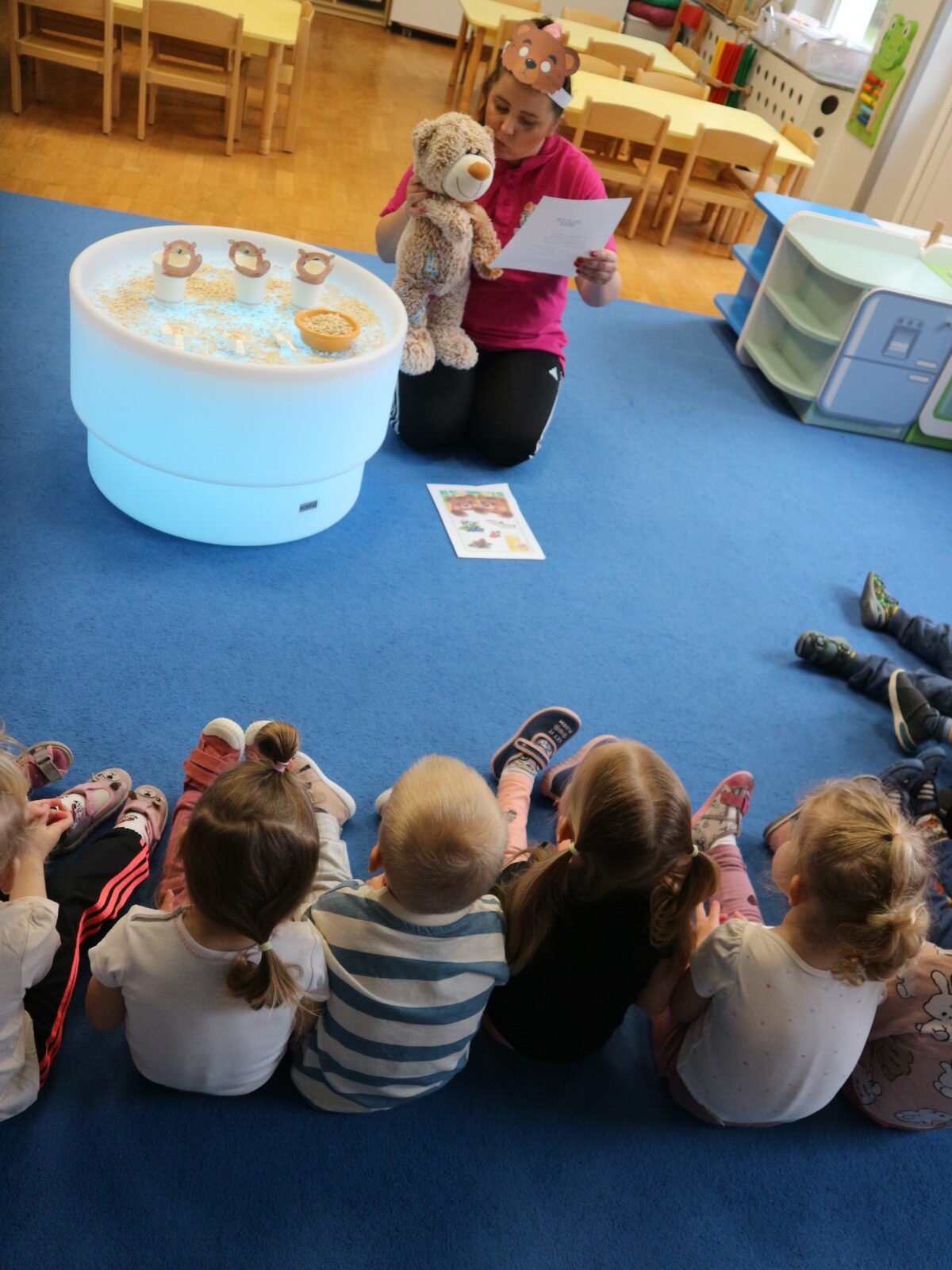 Wysłuchanie wiersza pt. „Miś” i zabawy sensoryczne.