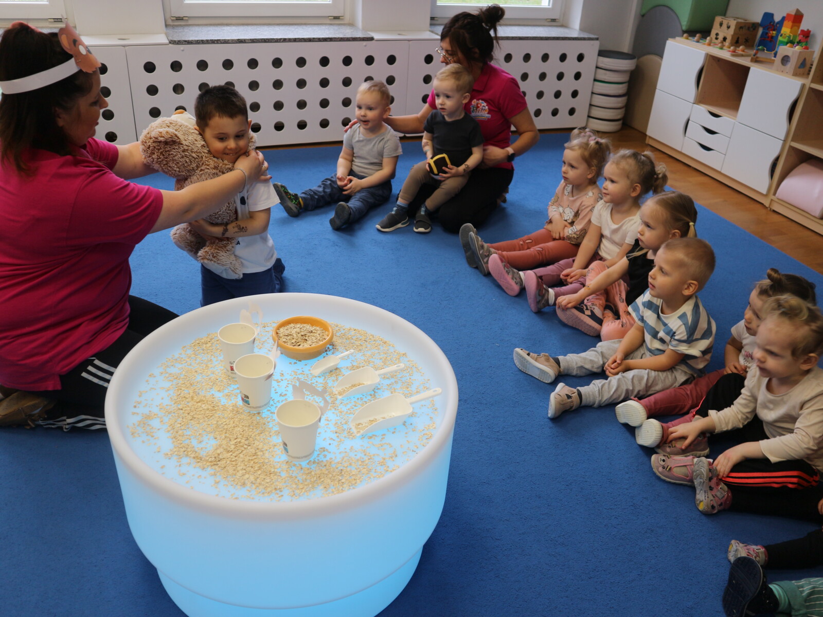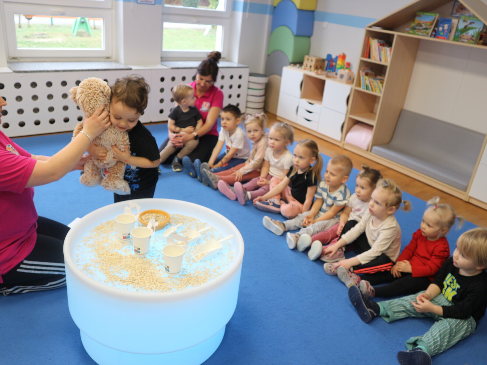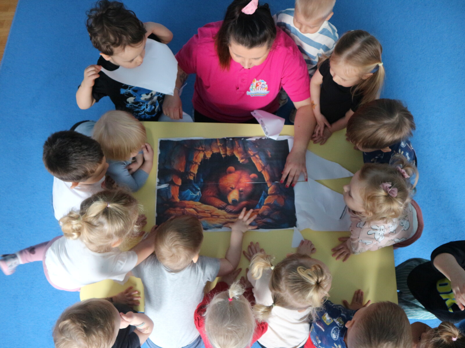 Wysłuchanie wiersza pt. „Miś” i zabawy sensoryczne.
