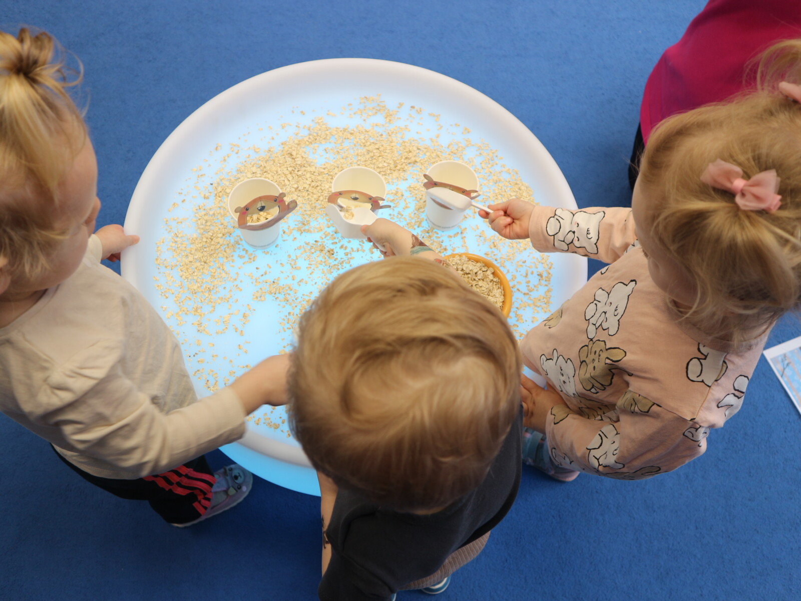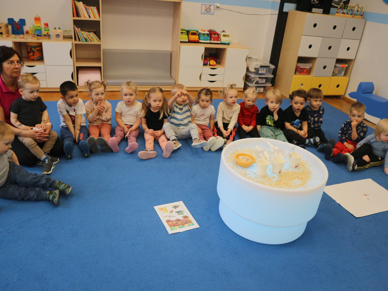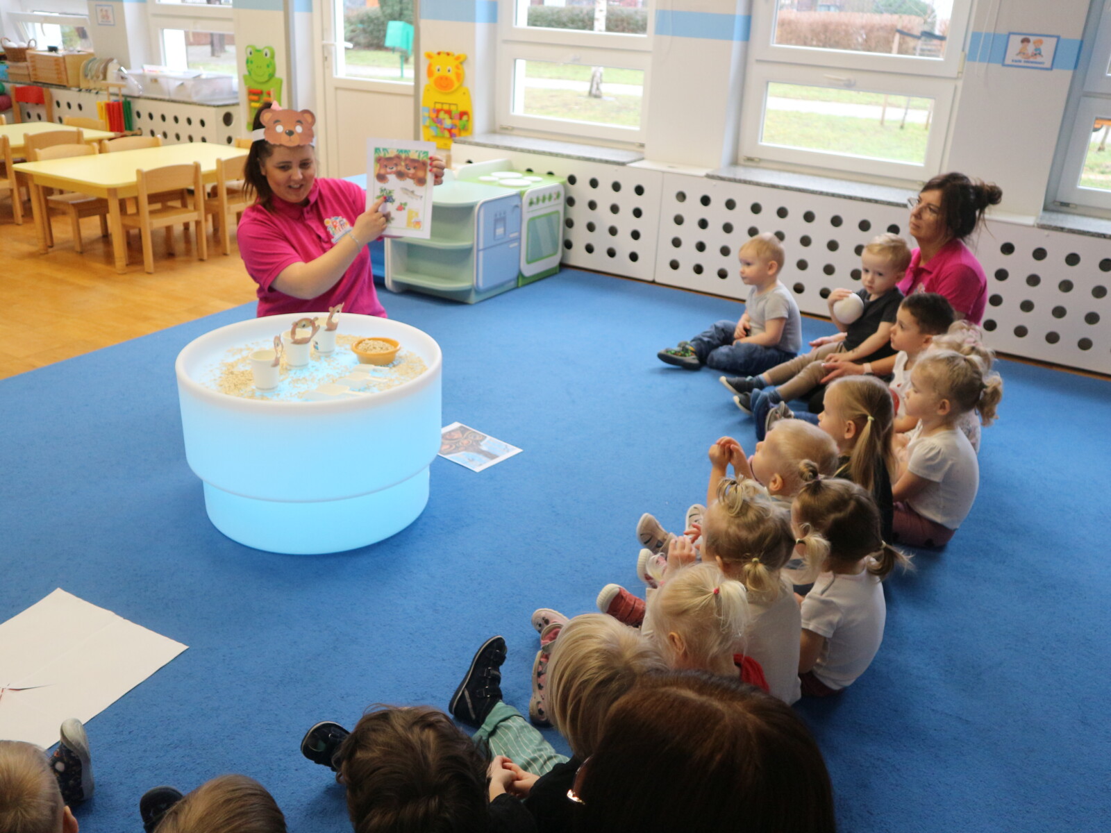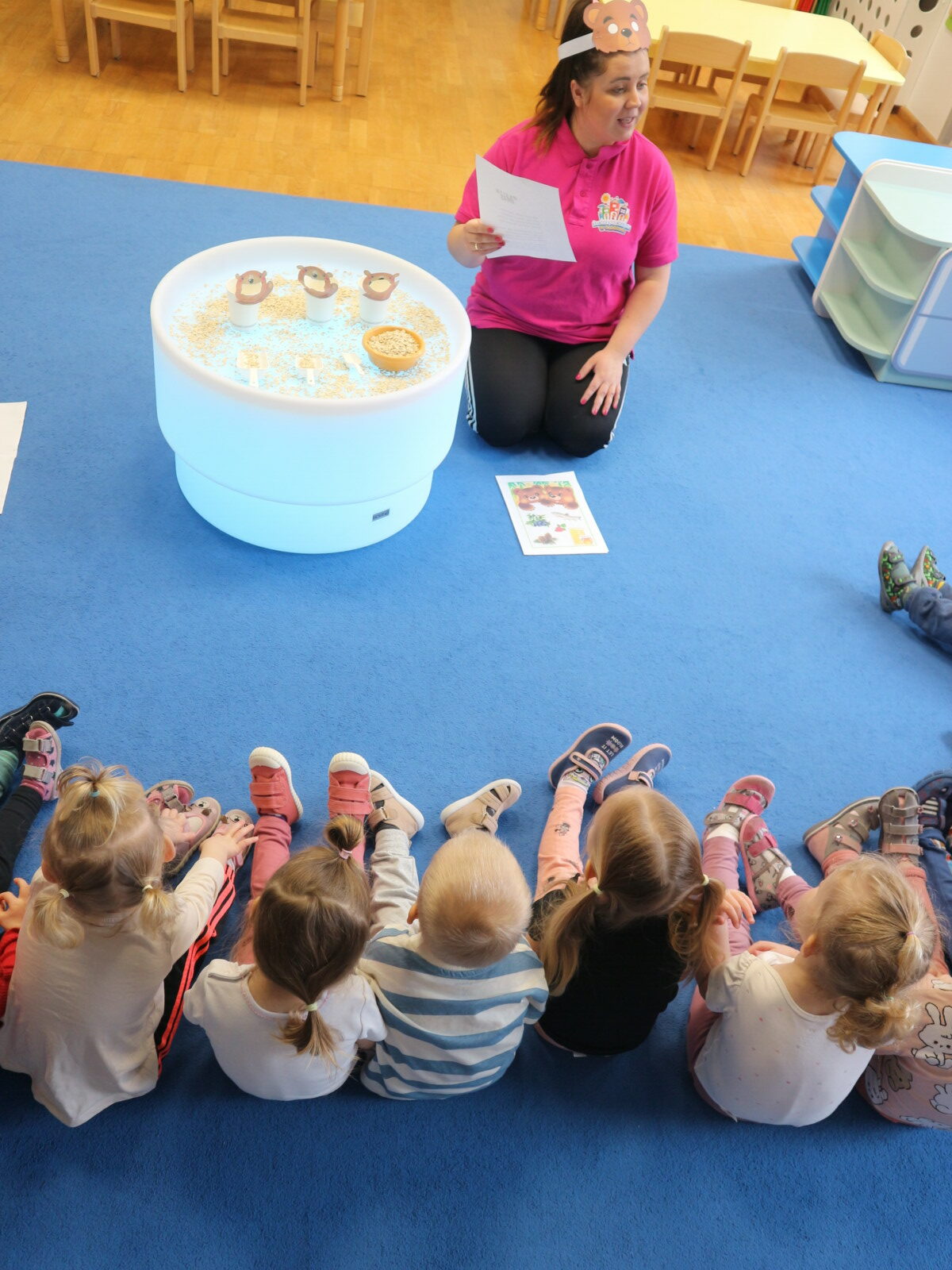 Wysłuchanie wiersza pt. „Miś” i zabawy sensoryczne.