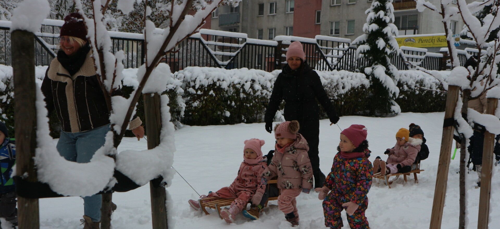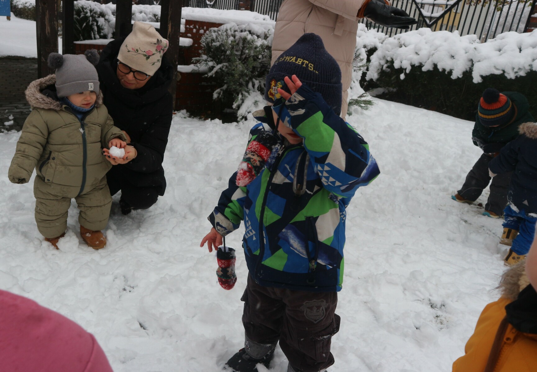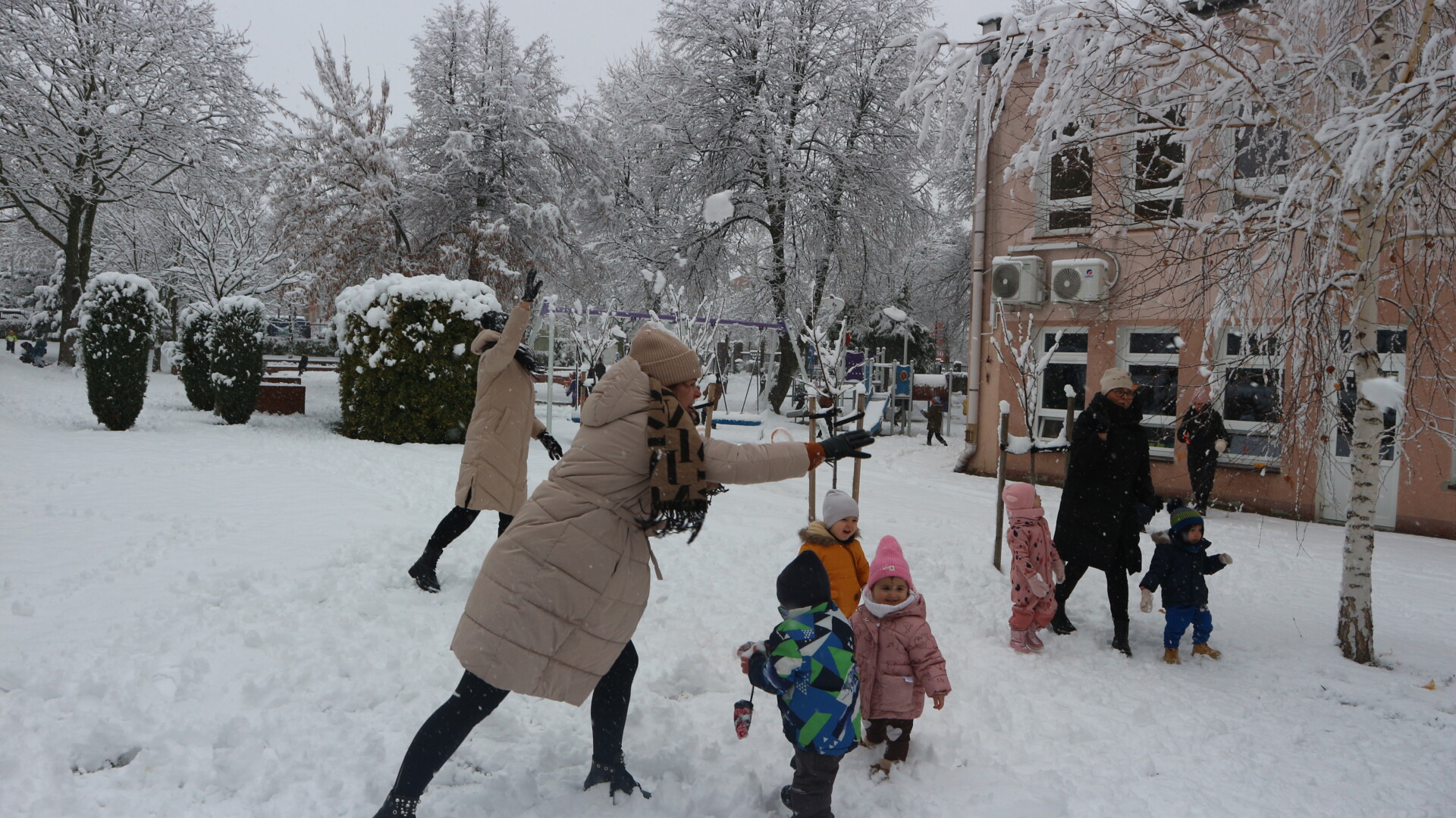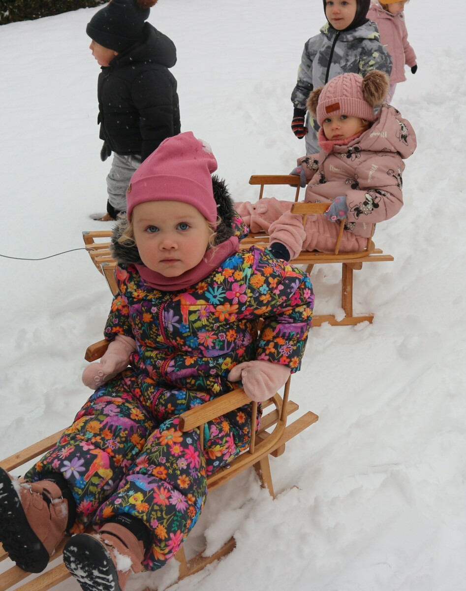 Dziś spadł pierwszy śnieg w tym roku , sprawił dzieciom ogromną radość. Maluchy z entuzjazmem wyszły na dwór , gdzie oddały się zimowym zabawom. Lepiły bałwana ,robiły aniołki ,rzucały się śnieżkami