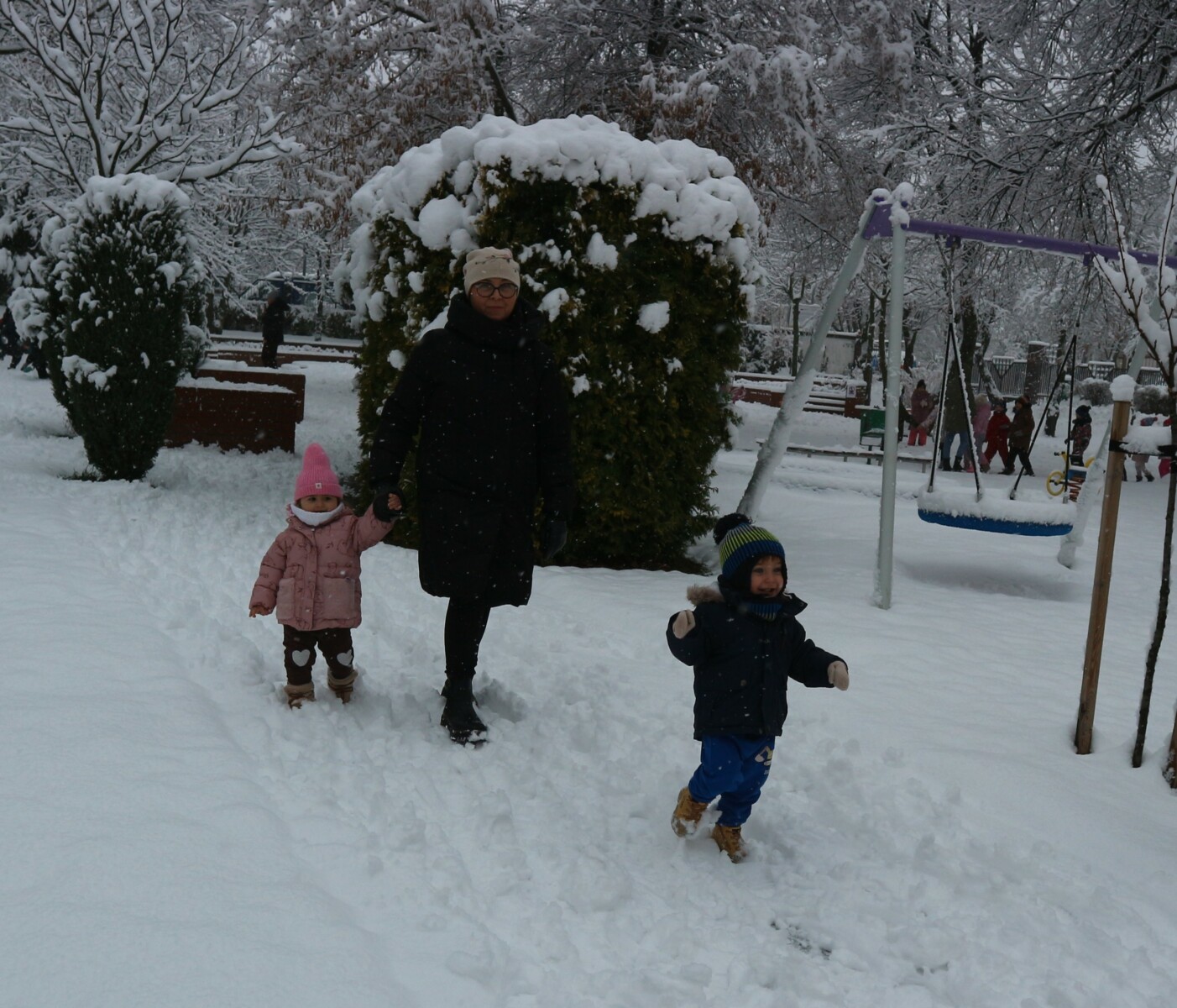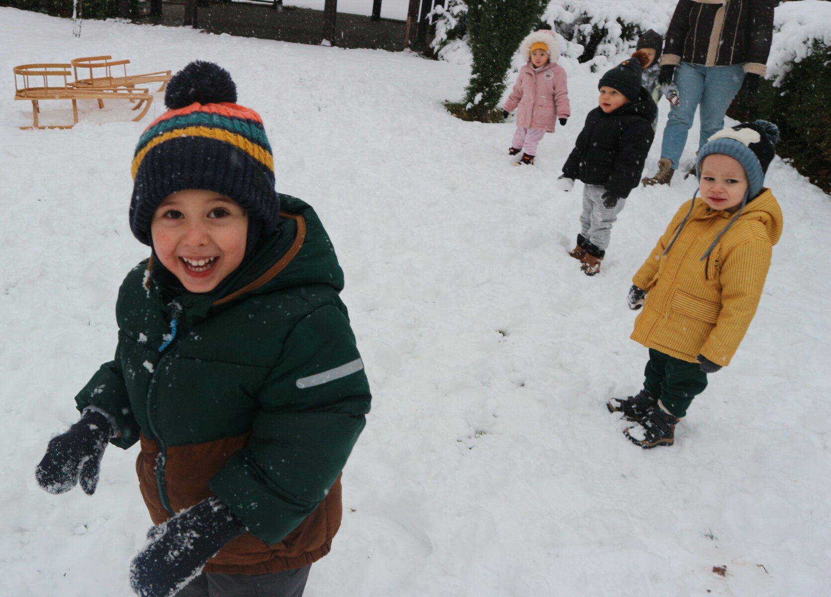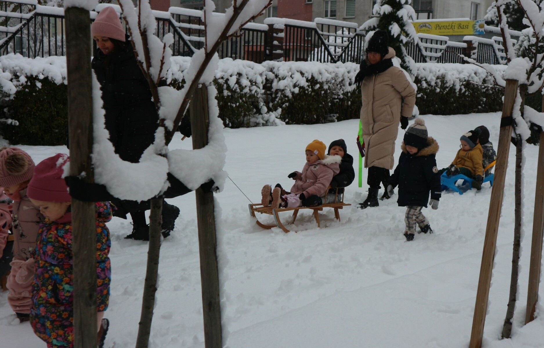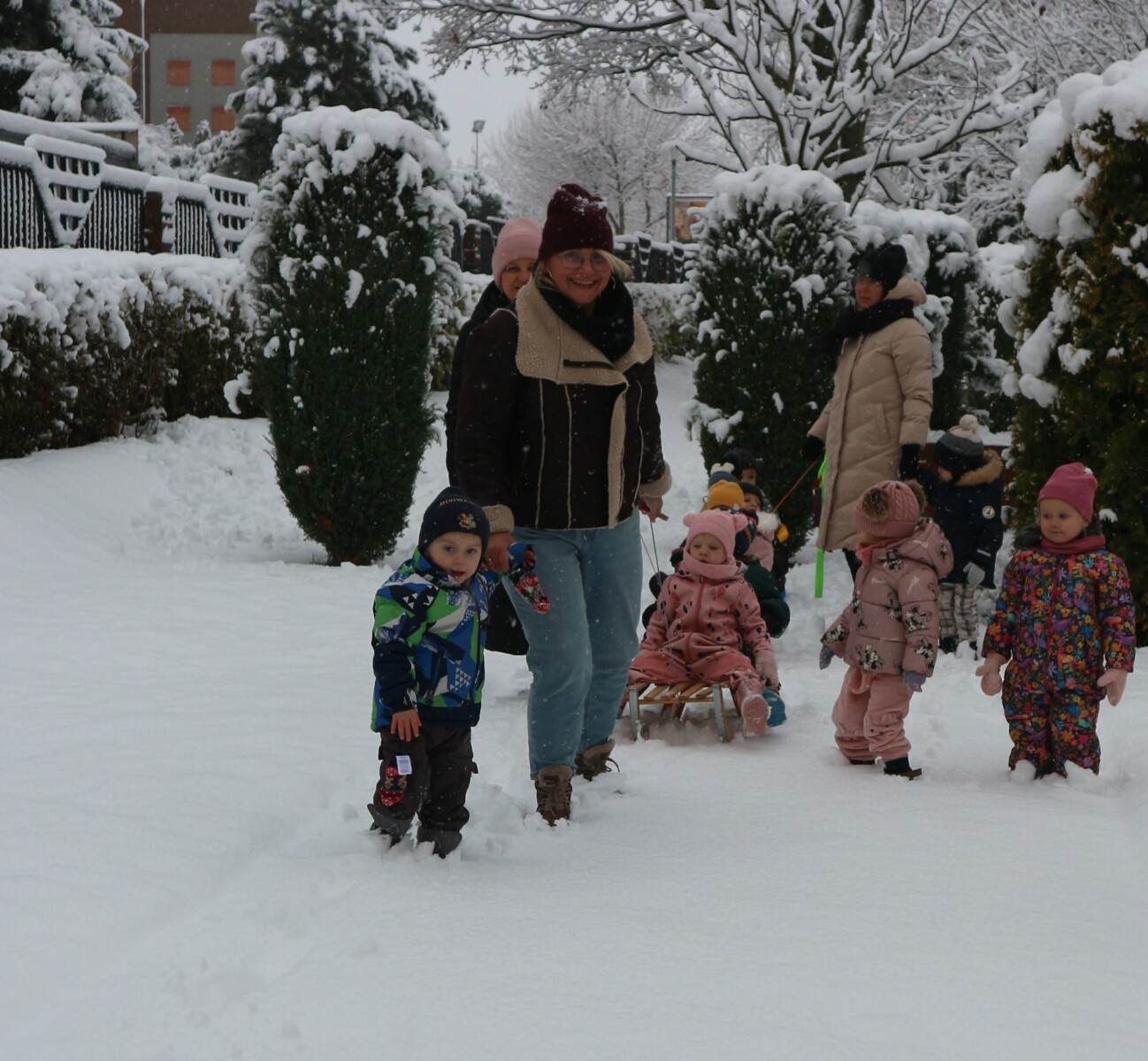 Dziś spadł pierwszy śnieg w tym roku , sprawił dzieciom ogromną radość. Maluchy z entuzjazmem wyszły na dwór , gdzie oddały się zimowym zabawom. Lepiły bałwana ,robiły aniołki ,rzucały się śnieżkami